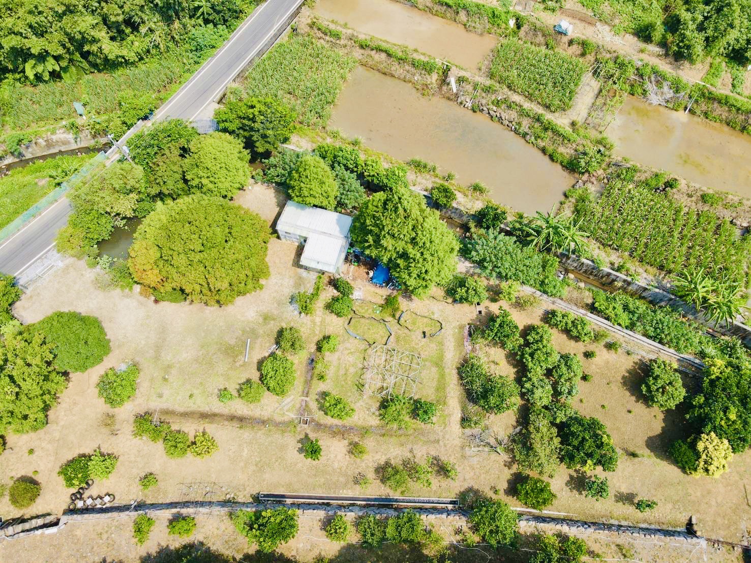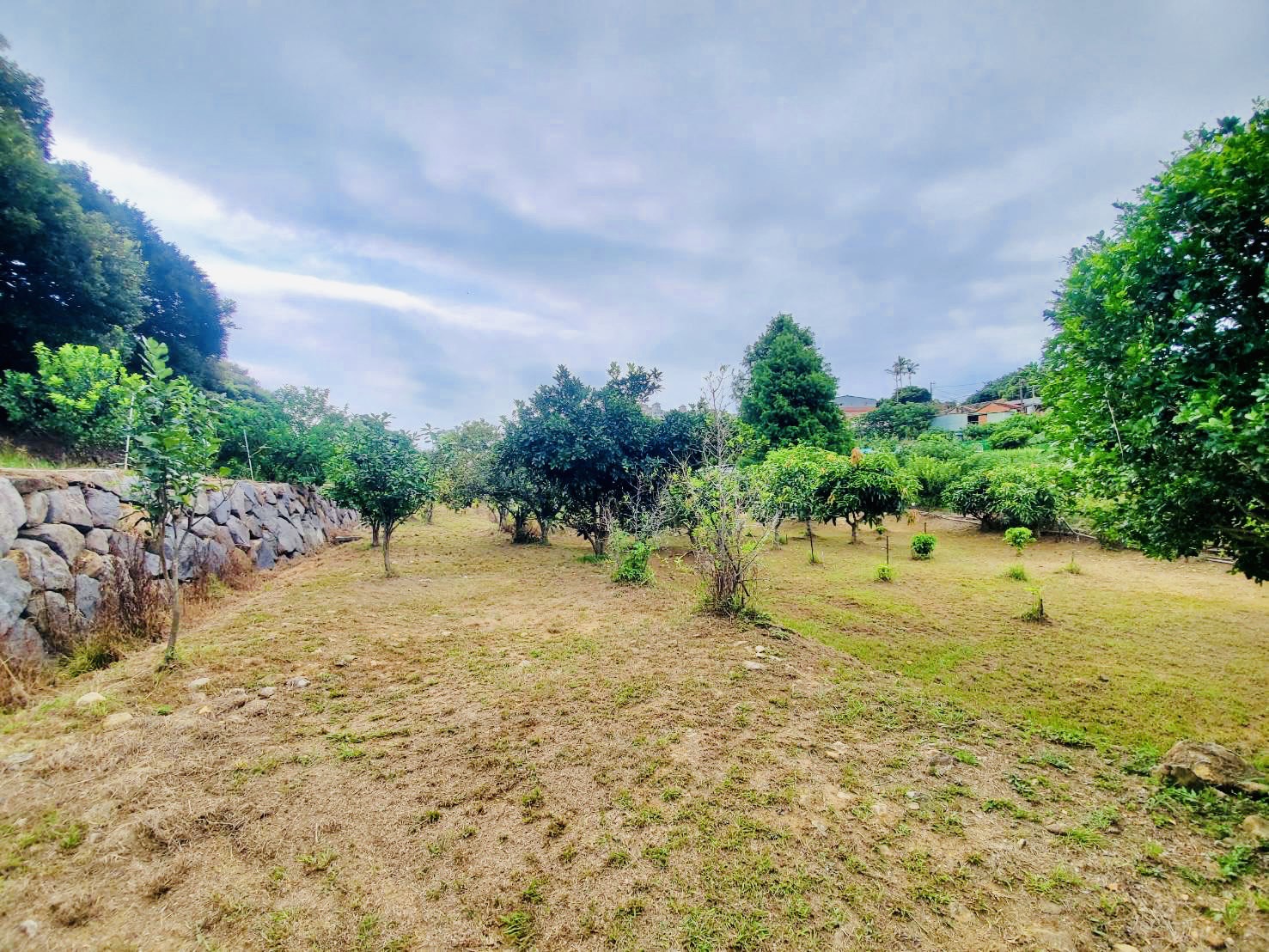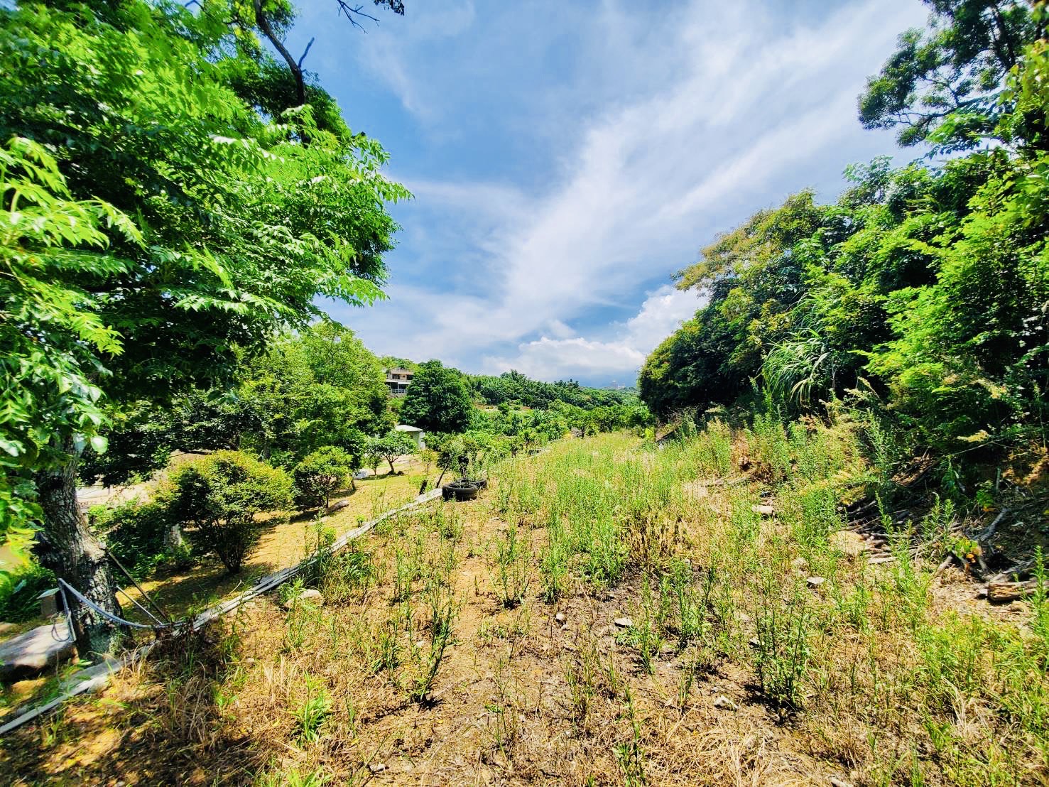 地勢平坦.土壤肥沃.種植花果樹木.全都長得很好.結實纍纍. 楓樹.落雨松錯落相間.美不勝收.臨溪水源充沛.自有天然漂亮. 水池美不勝收.自然工法堆疊的堅固石牆.上有一合法資材室. 有水.有電.地主用心建設.養生.休閒的最佳選擇