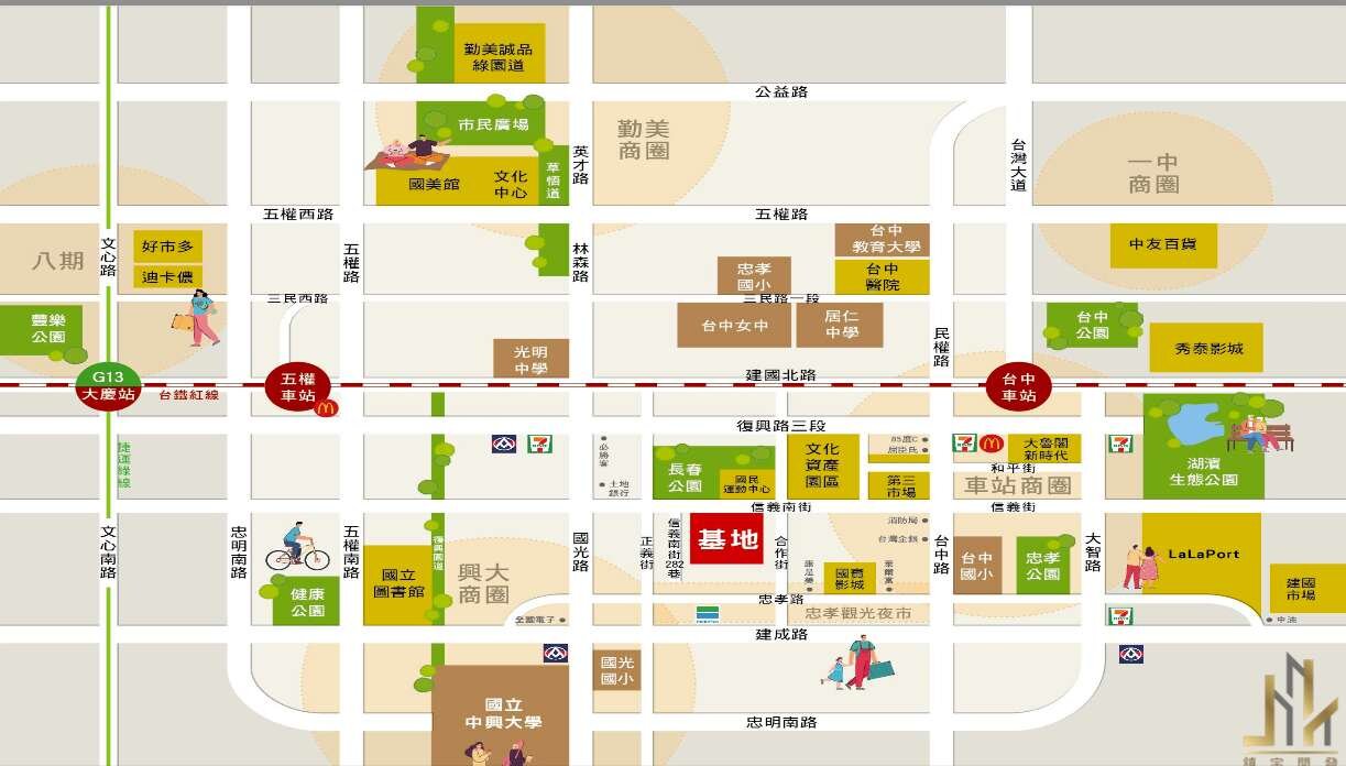 4.百億大台中車站計畫、三井Lalaport、秀泰影城百貨、新時代廣場、建國市場、忠孝夜市、中興大學10分鐘車程皆可抵達!周遭就業機會多