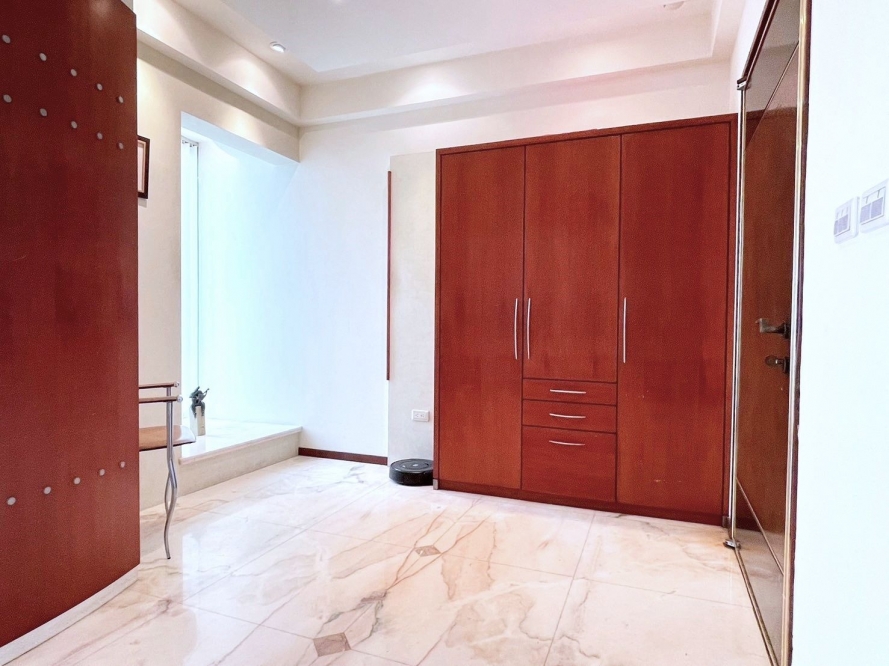 3.玄關鋪設奧羅拉大理石,全室櫻桃木及山毛櫸裝潢,紅檀原木地板,尊貴舒適。