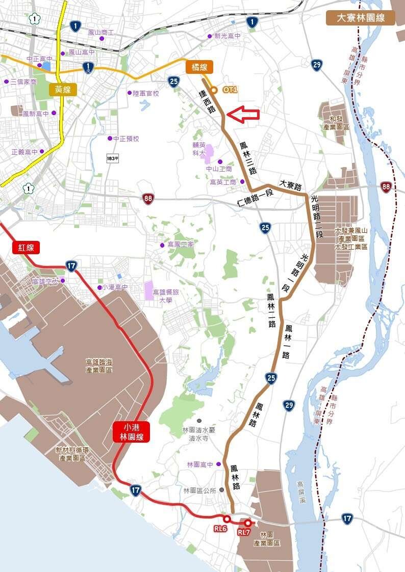 二、大寮林園線預計今年初送交通部審議,若順利推動,將串聯現有的捷運紅線與橘線,提升在地民眾往來高雄市區的交通便利性,並大幅改善上班族與學生的通勤需求,有望帶動區域經濟與人口發展