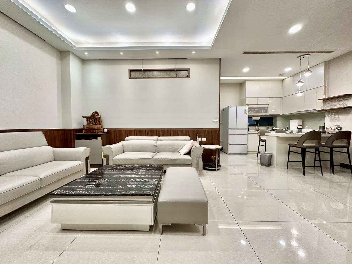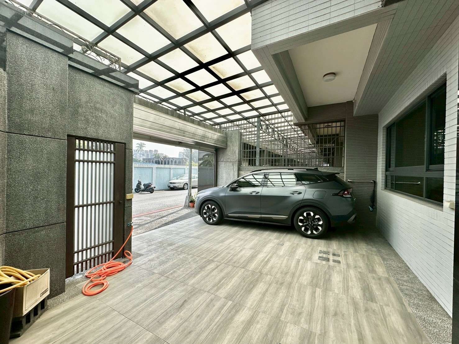 3:一樓:車庫+客廳+餐廳+廚房+衛浴+後方陽台(可當雜物間)