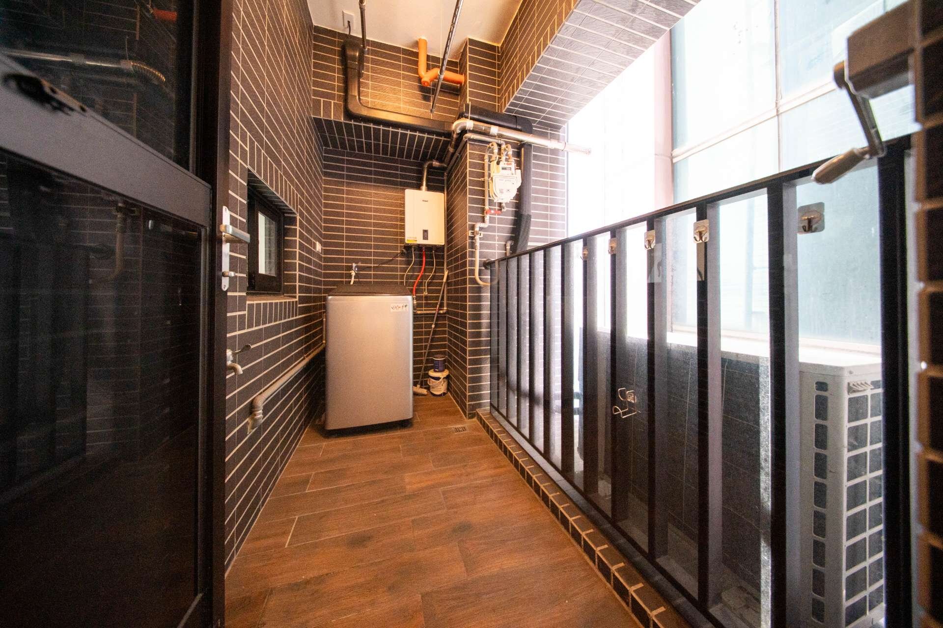 $輕豪邸少有天然氣明火,曬衣後陽台,用餐區中島吧檯