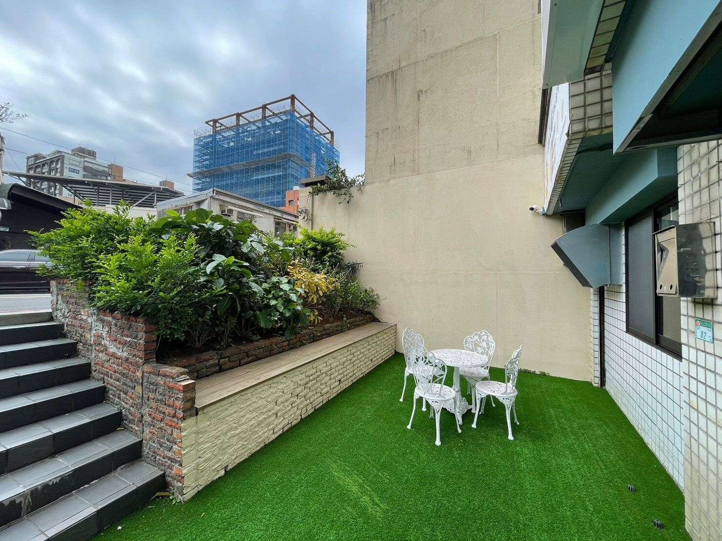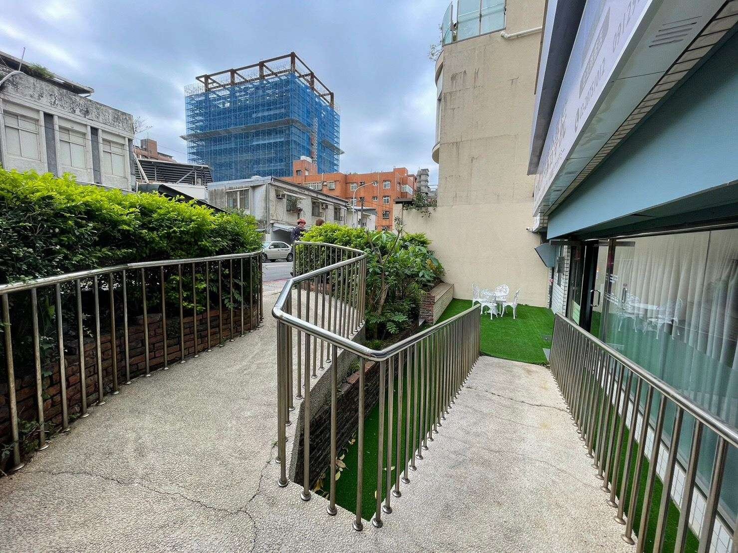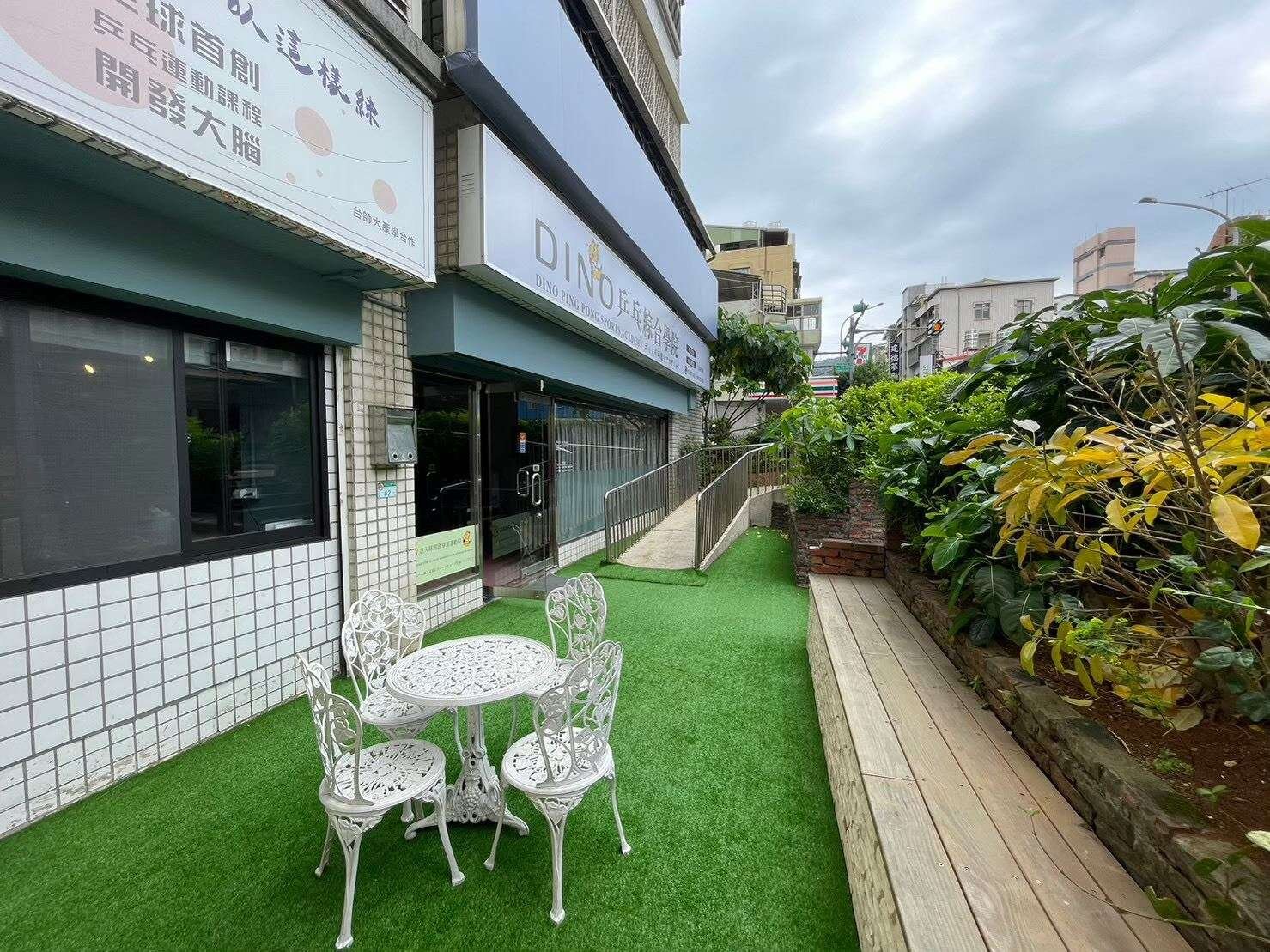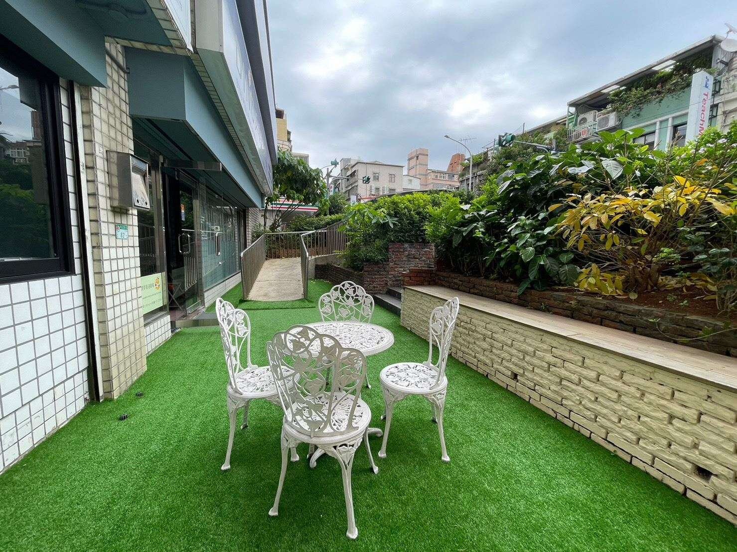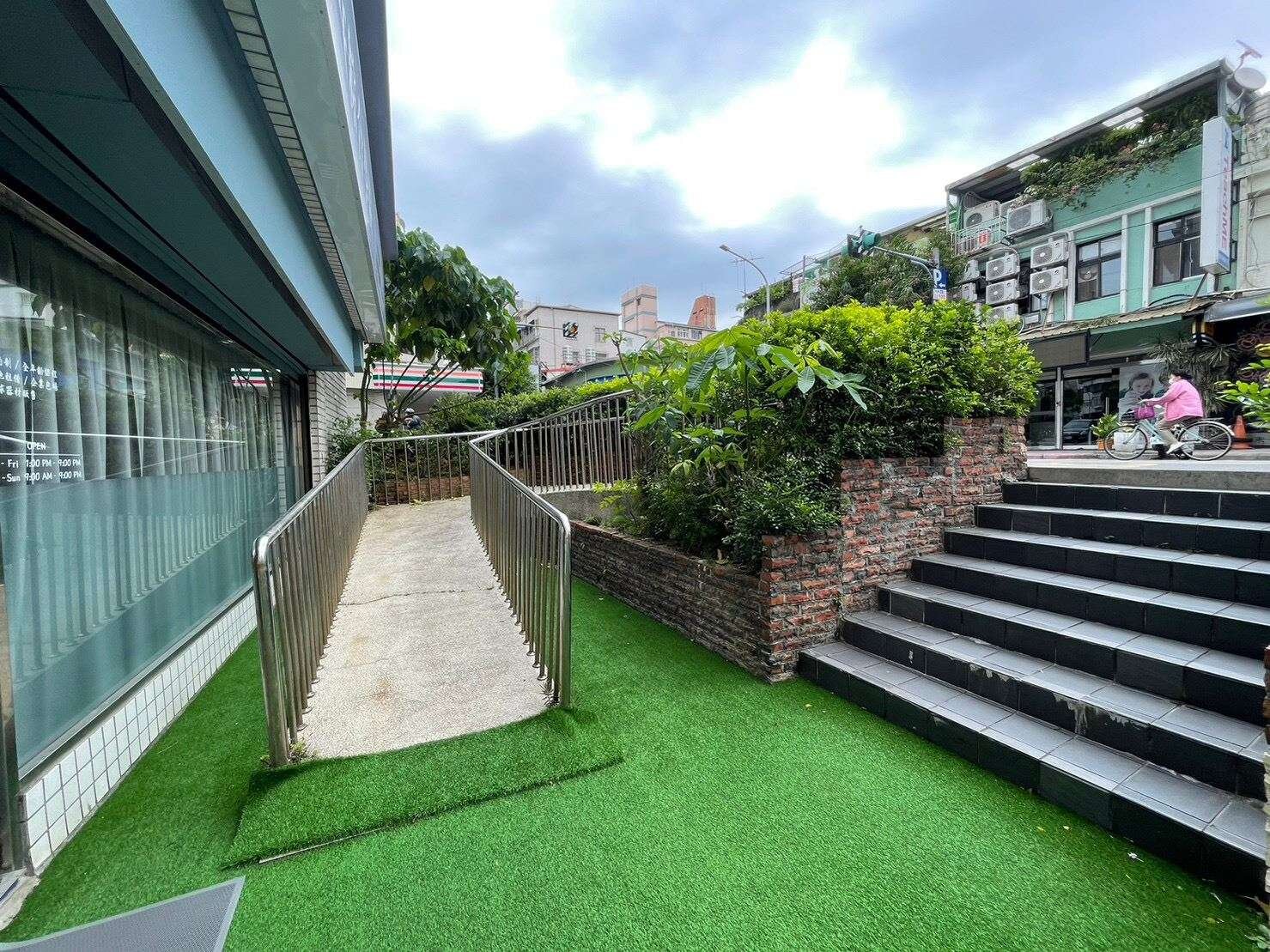 三角窗金店面,面寬使用空間大,前庭後院有無障礙空間設計。