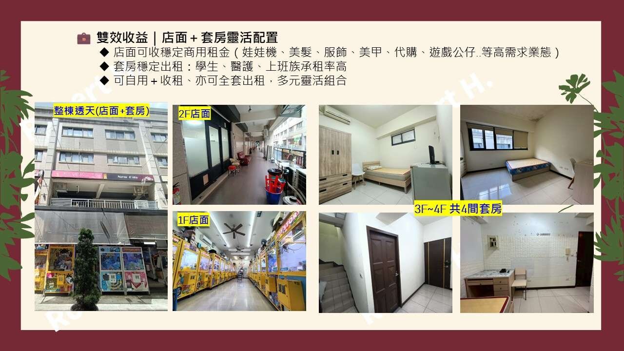 2. 傳家收租店套,可分兩間店面,四間套房出租