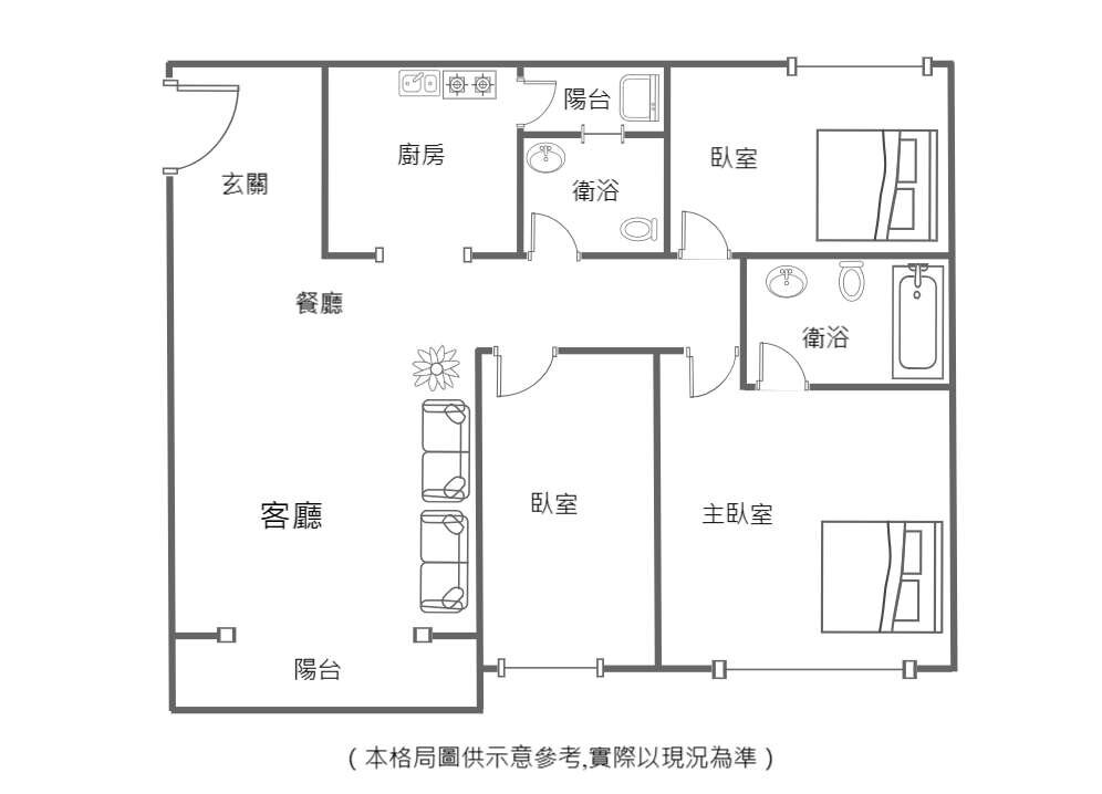※三間房開窗明亮,客用衛浴開窗