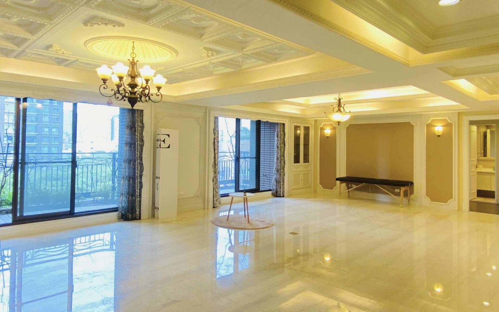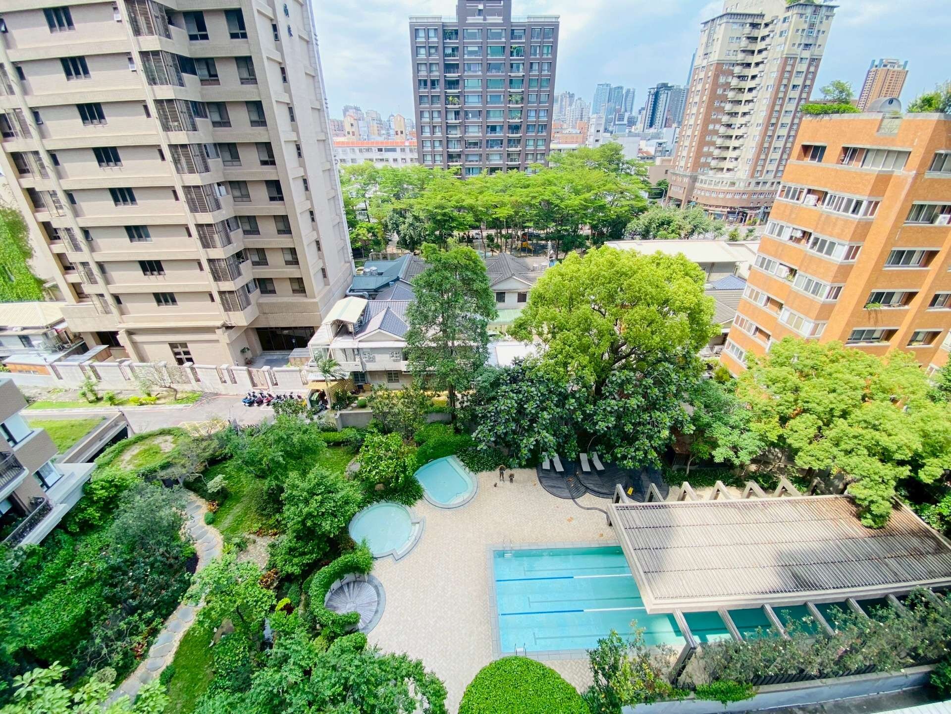 6.游泳池、健身房、視聽室、圖書館、頂樓lounge bar、迎賓車道及臨時停車位等五星級公設