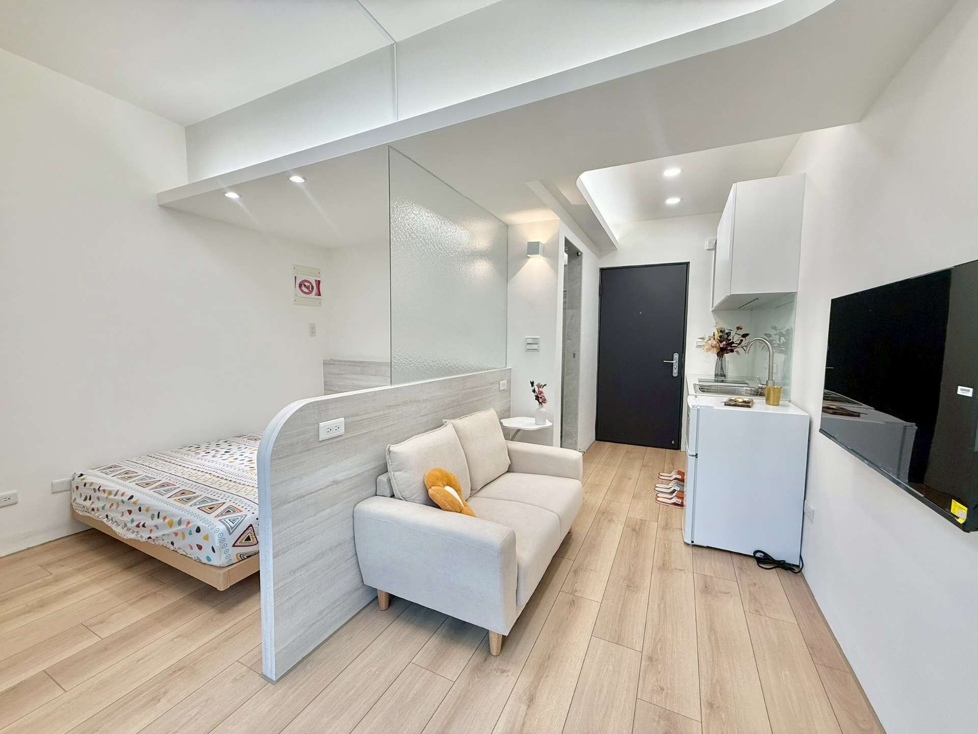 小客廳 + 清楚的臥室區隔,還有屬於自己的衛浴與套房空間,不用擔心空間混搭、動線雜亂