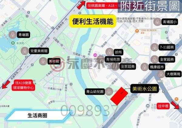 青埔『美術水公園』 農曆年前最後換約、把握機會 位於領航南路二段與致善路一段交叉口。 基地面積約2284坪,地上23樓、地下3層。 挑高10米迎賓大廳、交誼廳、閱覽室、游泳池 等多項設施。 附有SPC降躁地板、Kwikset八合一人臉辨識電子鎖、櫻花櫥櫃系統、櫻花IH爐、 抽油煙機、下嵌式烘碗機、Svago微波蒸烤爐、廚下型淨飲機、Karat衛浴系統。 至A19、環球購物中心 車程約3分鐘。 至A18、桃園高鐵站、華泰名品 車程約5分鐘。
