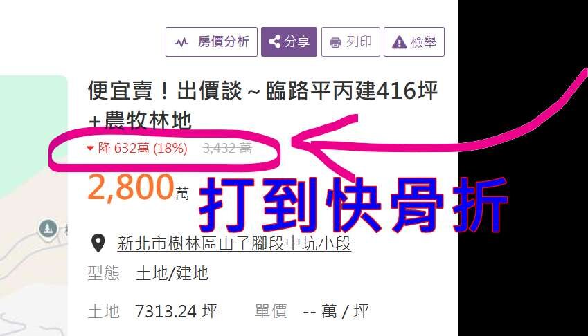 假設:2800萬只買丙種建地416坪,單價才6.7萬~(還有農林地6896坪等於免費送你)