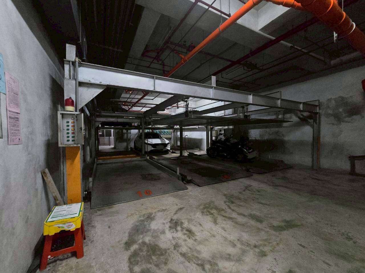 昇降機械車位,按10號降下來即可停車,停好車按歸位鍵