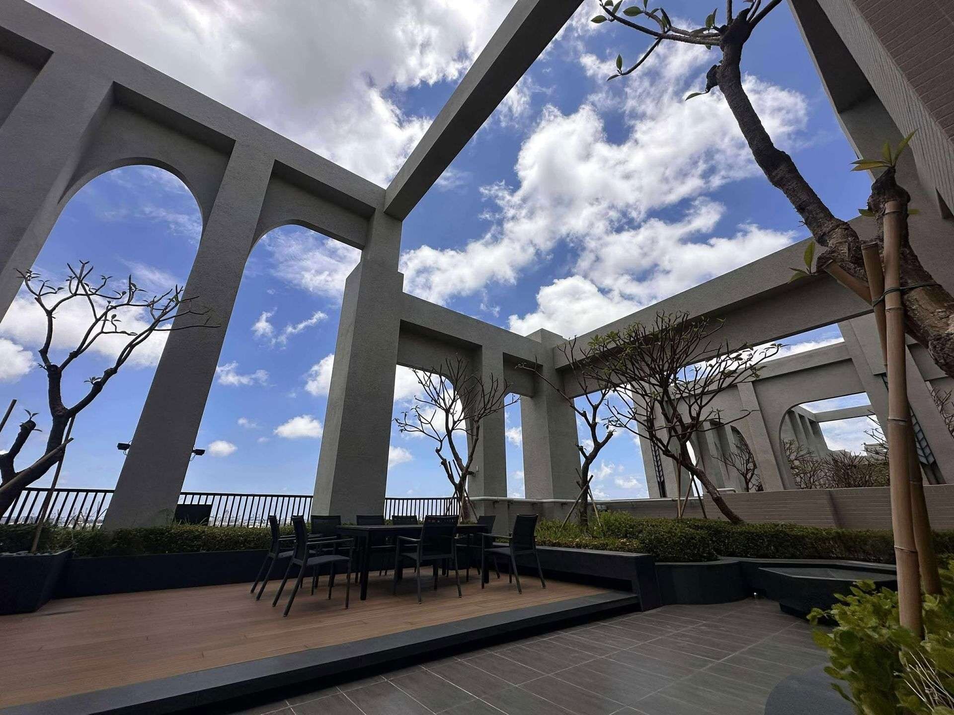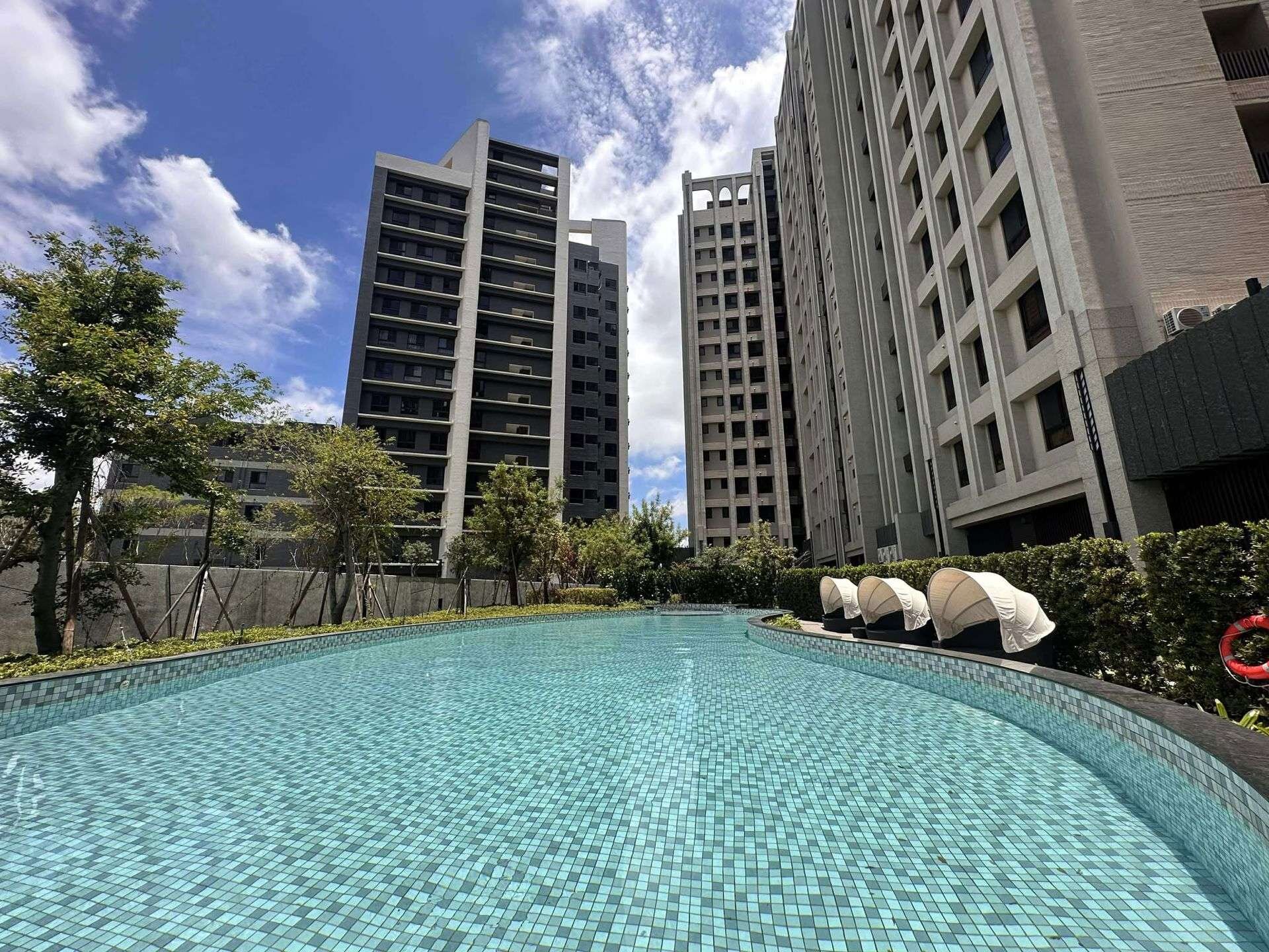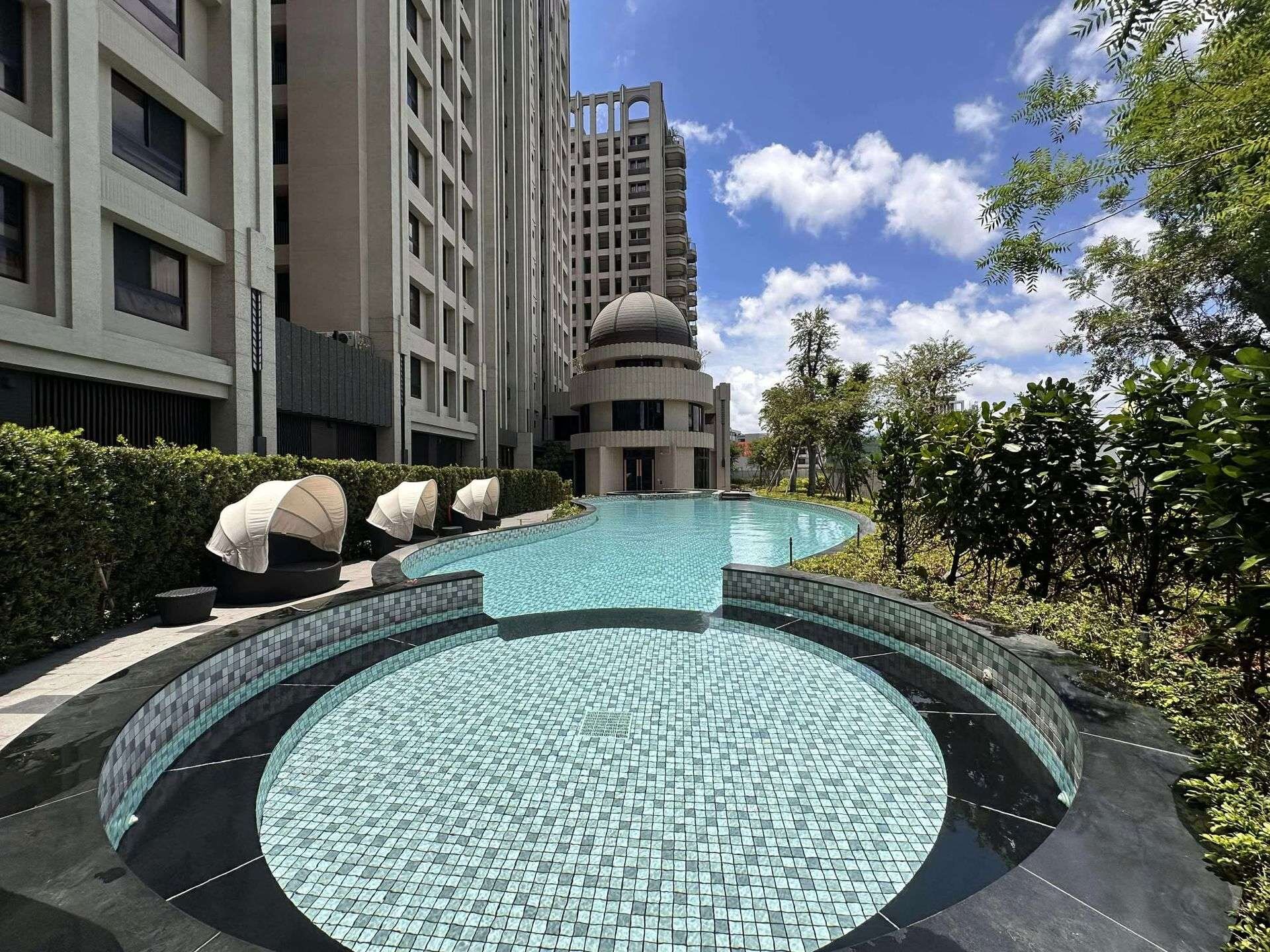 5、獨棟3樓高藝術公設會館,住戶享有更高隱私。中庭規劃500坪星空花園泳池,豐富休閒設施,假日就在家放鬆。