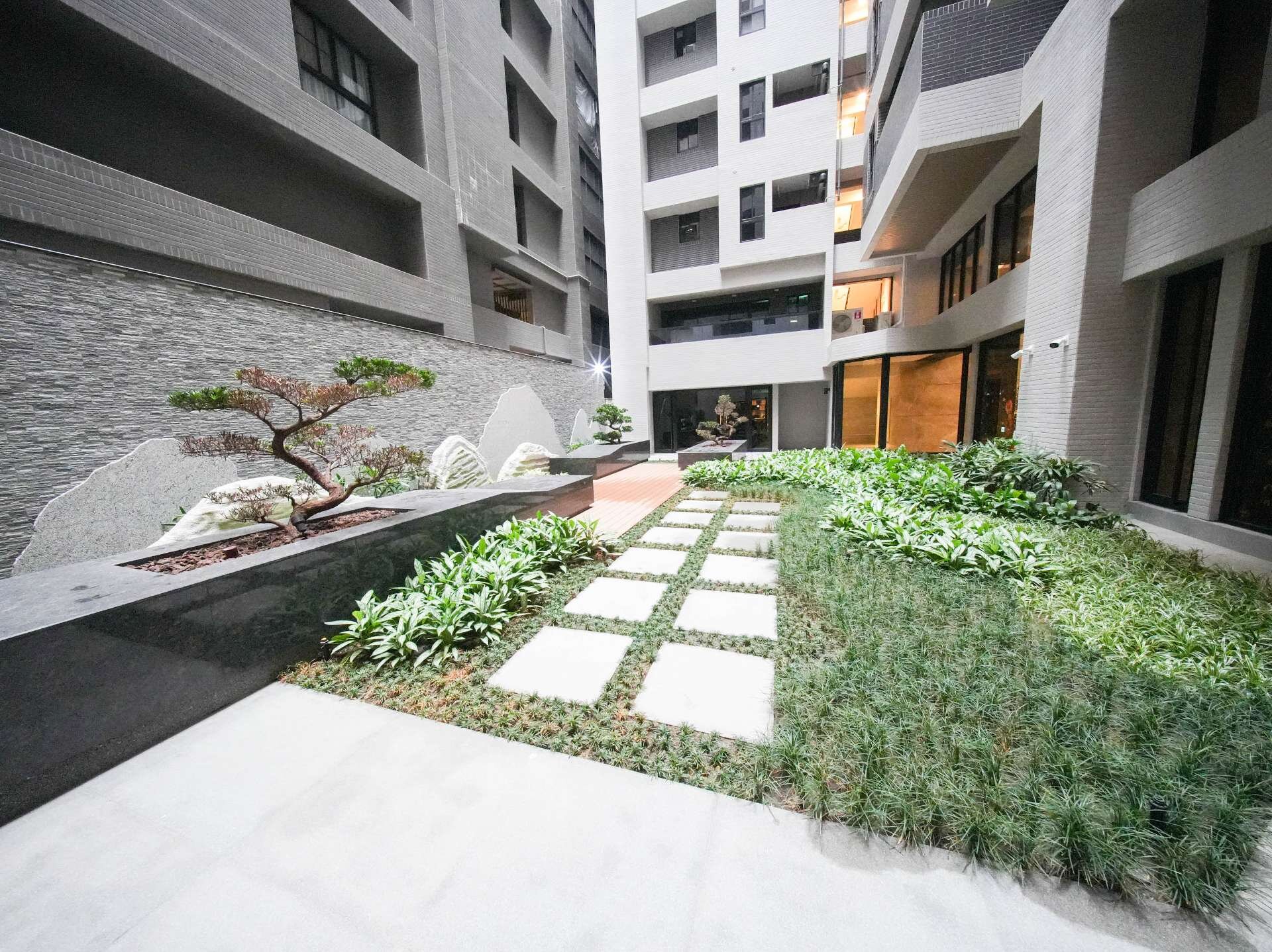 📍大樓外觀採律動的建築及浪型曲線,創造極具現代張力的建築美學,榮獲美國謬思設計大獎金獎,接待大廳、中庭花園、空中花園、交誼廳、會議室、健身房、親子遊戲區、兒童遊戲區、KTV、瑜珈教室、信箱區、曬被區,結構採RC鋼筋混凝土,建材有廚具:德匠、林內,衛浴:TOTO,LOW-E玻璃