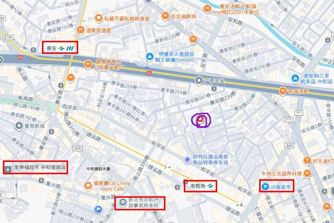 地點位南勢角商圈,儘享商圈熱鬧和便利,但和大馬路有一些距離,是難得的鬧中取靜