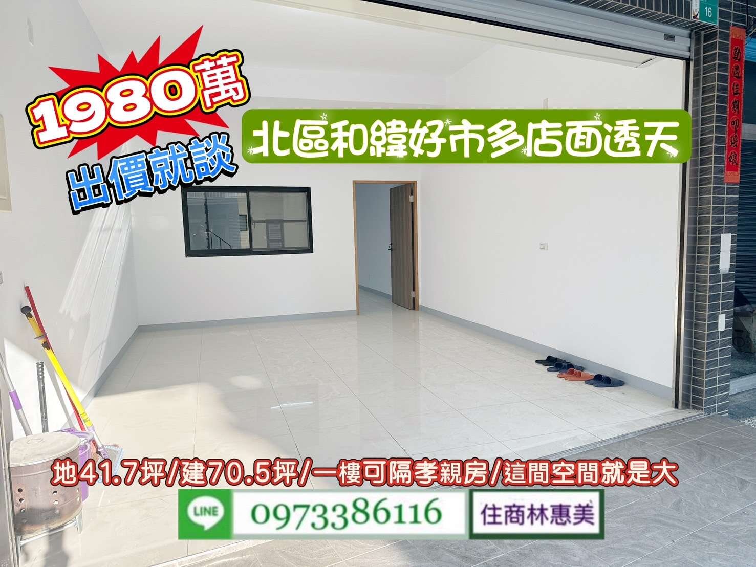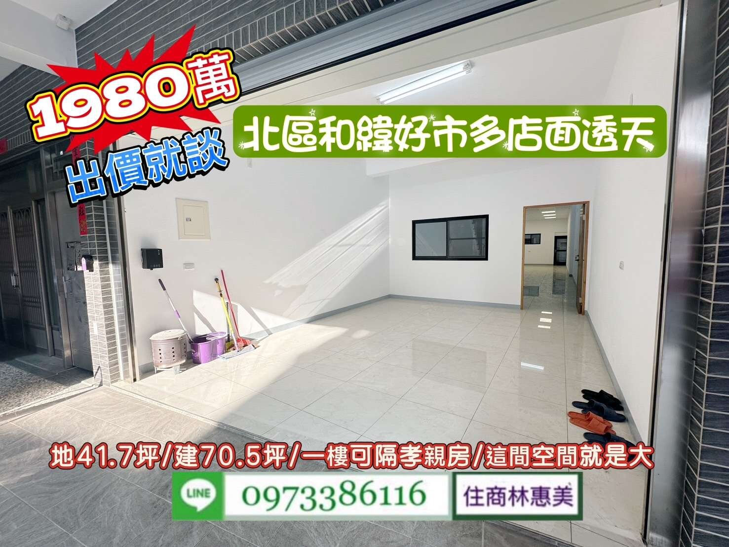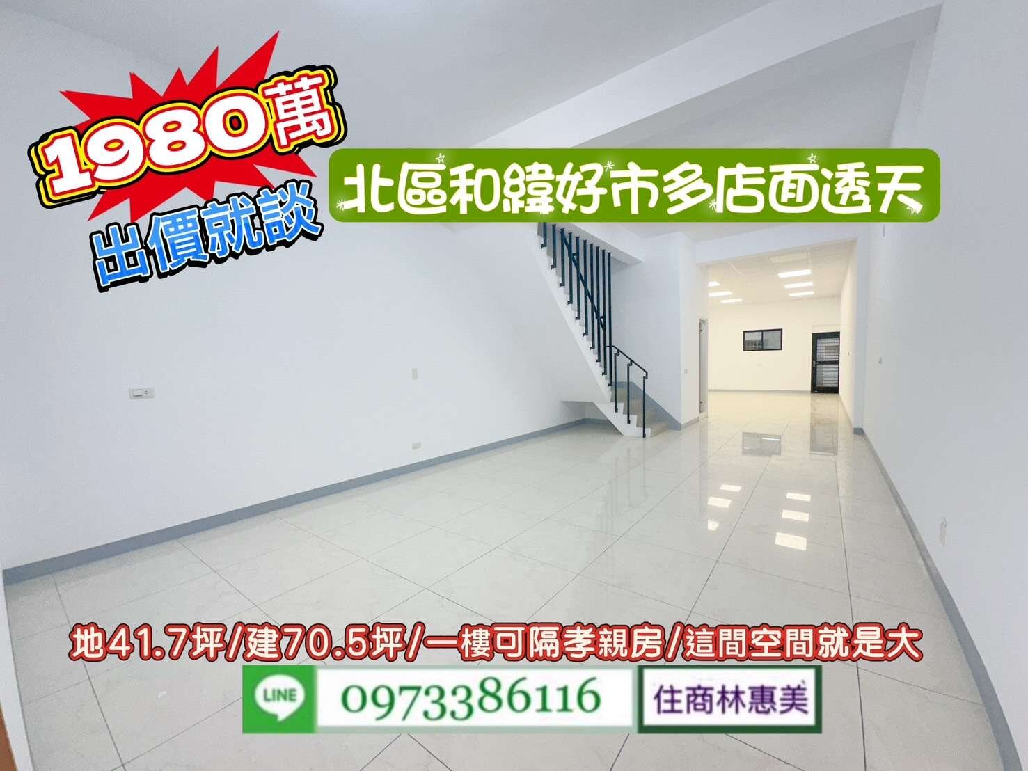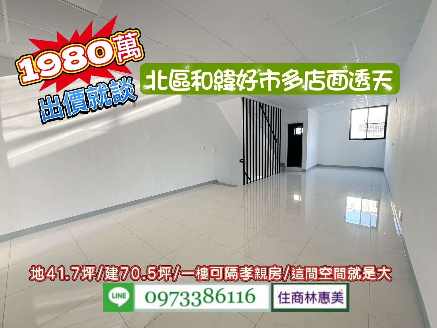 北區大興街好市多和緯大地坪翻新透天店面/售1980萬/林惠美0973386116