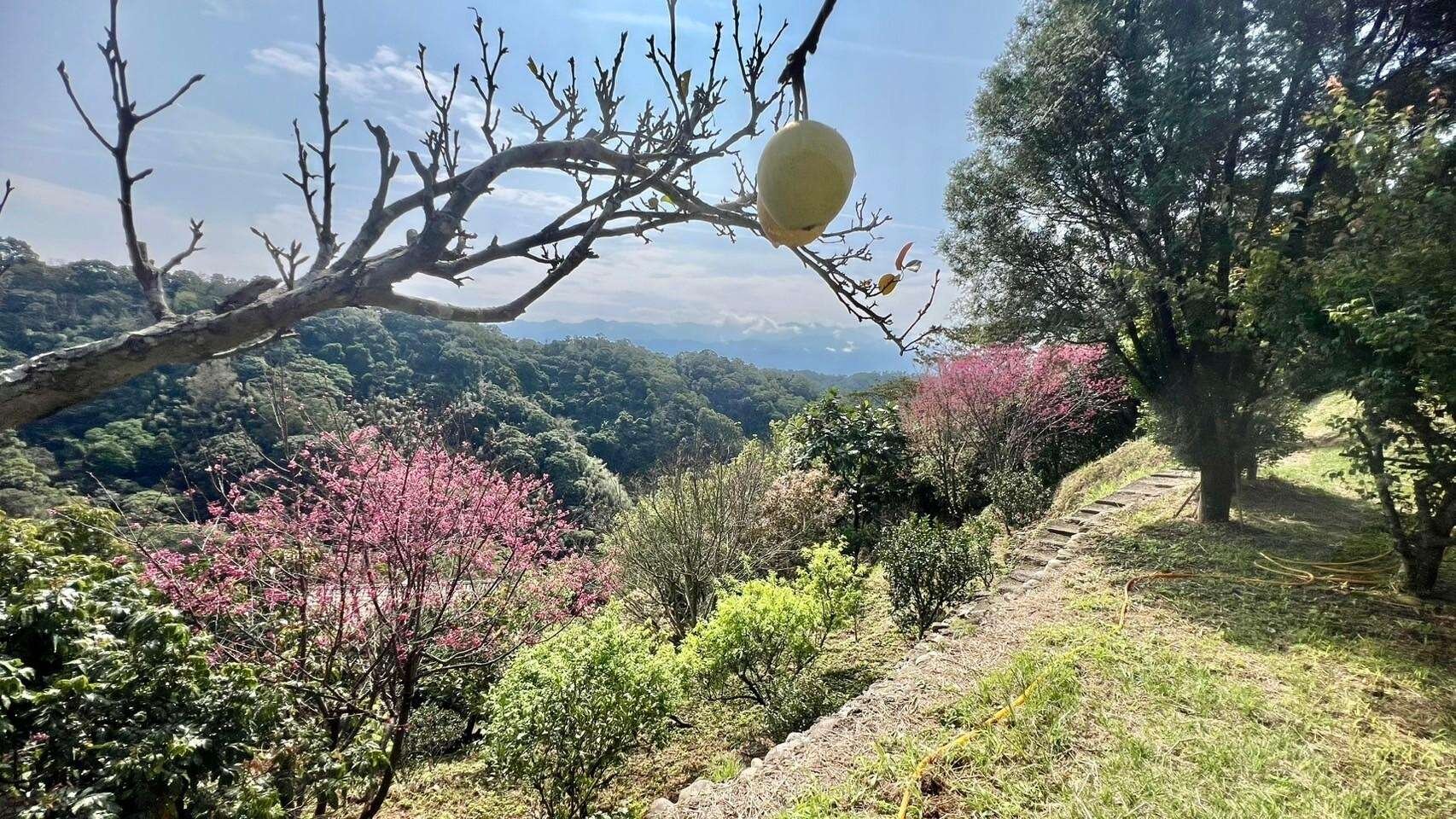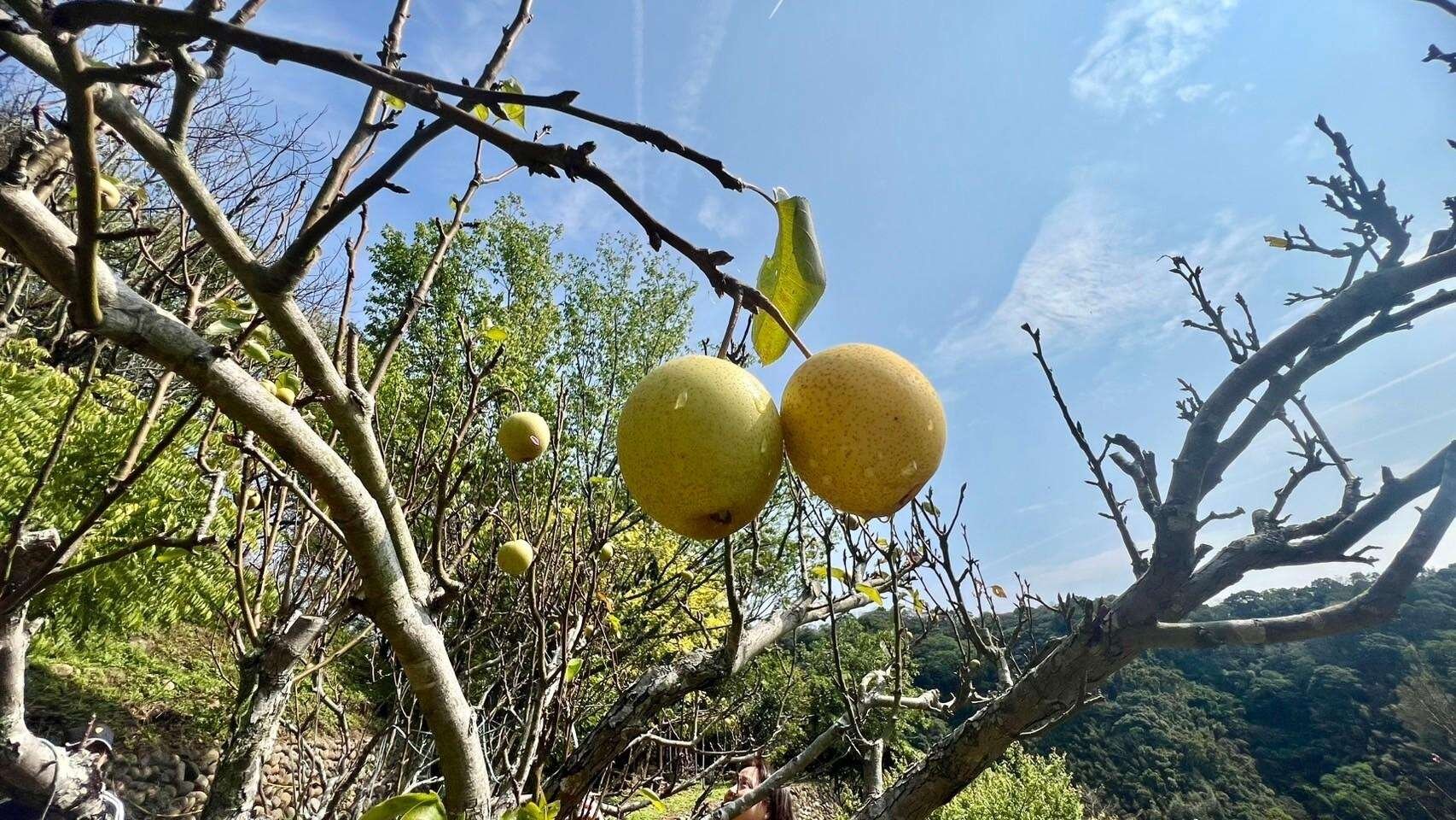 有:柚子、砂糖橘、桶柑、樹葡萄、金桔、芒果、楊梅、楊桃、梅子樹、桃子、李子、仙桃、葡萄、龍眼樹..一年四季果樹皆有,整個莊園