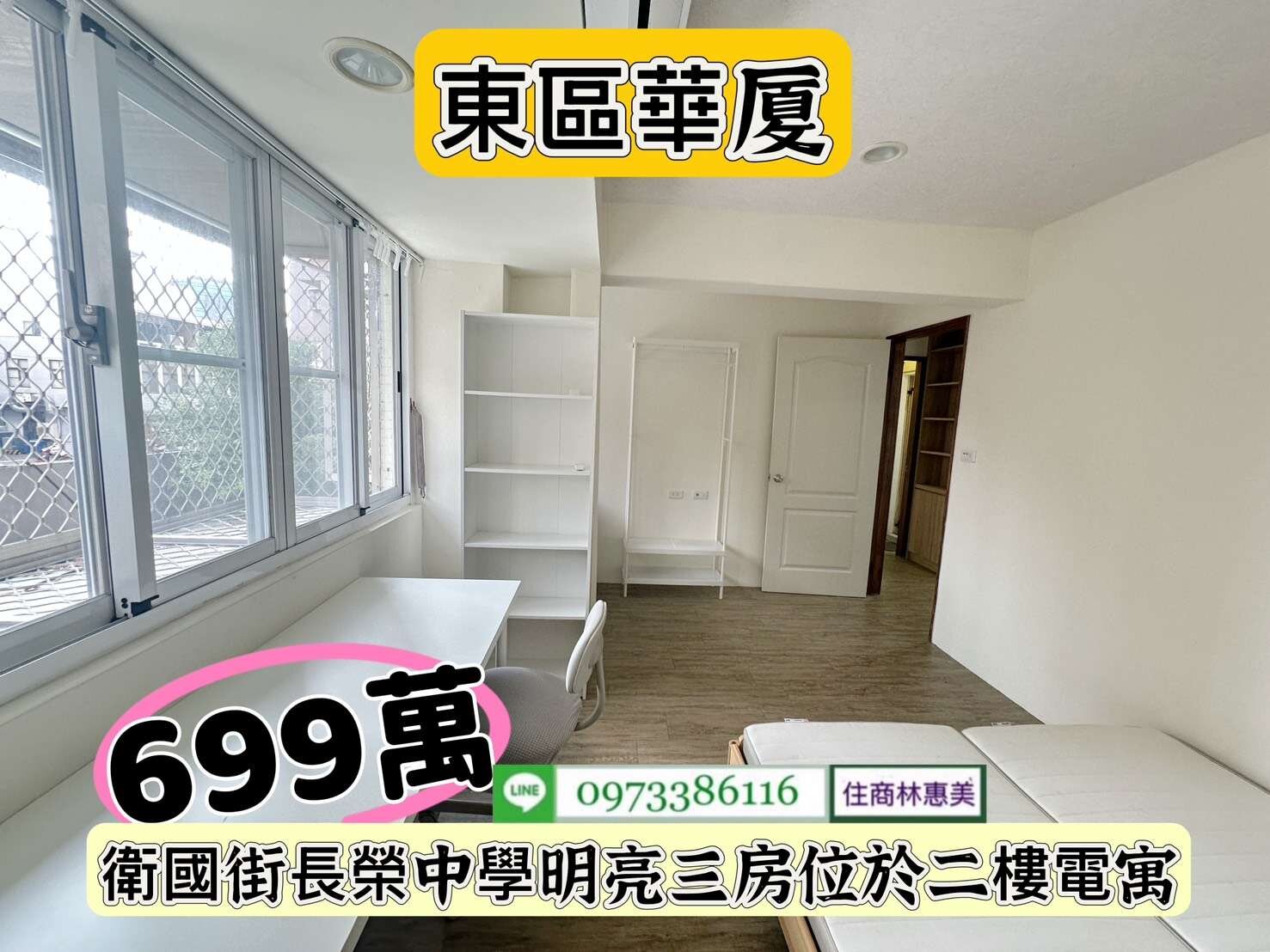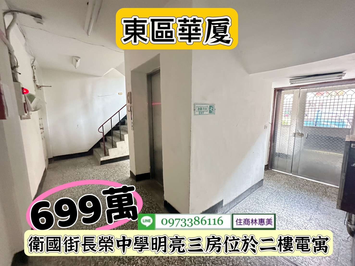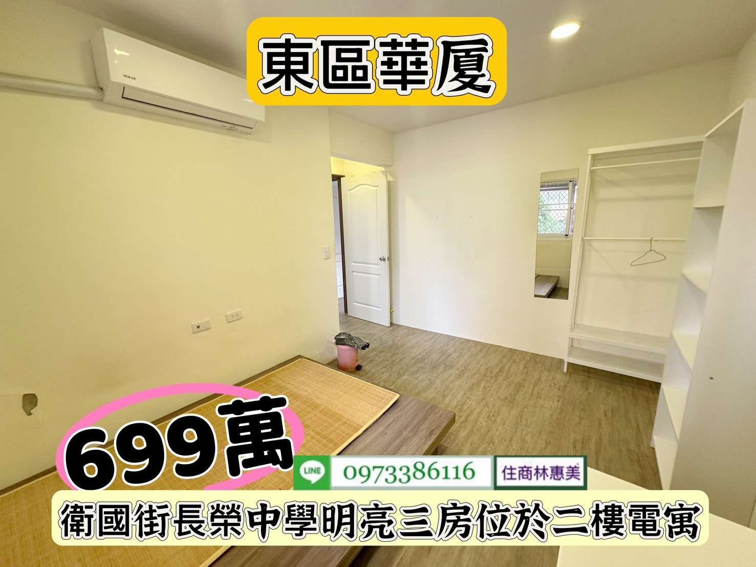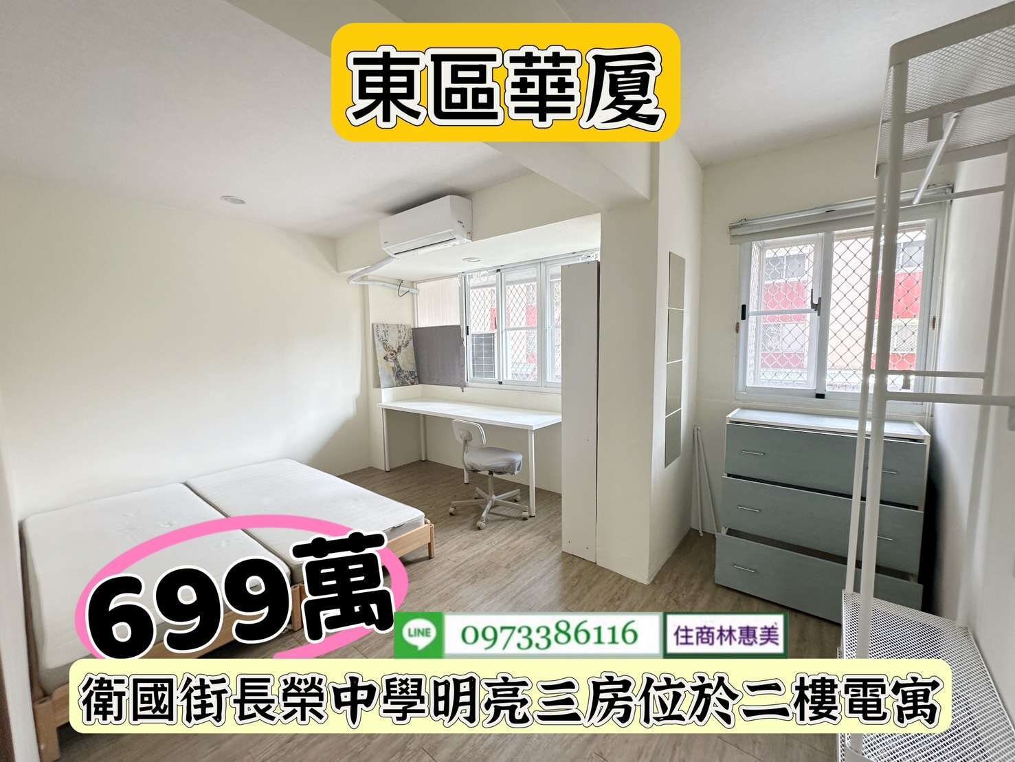 東區衛國街長榮中學3房2F電寓/售699萬價可談/林惠美0973386116