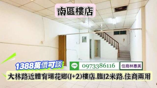 ⭐南區大林路花鄉1+2樓店面.附一車位/售1388萬.價可談/林惠美0973386116