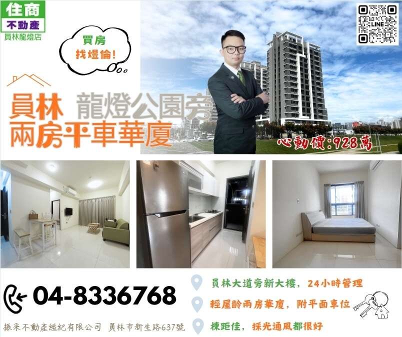 🌺最超值新華廈, 成家首選 小家庭 小夫妻 單身貴族很適合 🌺另有3房平面車位高樓層1130萬 🌺 龍燈公園旁 生活機能好 🌺 地點好, 走到龍燈公園 龍燈夜市 🌺一卡皮箱即可入住,, 雙衛浴 🌺 地點無敵好 平面車位 🌺幸福成家專線 : 凃依辰0932682547 + LINE同https://line.me/ti/p/B8ivPrhmOL 🌺勇敢出價,我們來幫您圓夢 🌺振采不動產經紀有限公司 🌺住商不動產員林龍燈加盟店 🌺歡迎委託銷售 / 免費估價