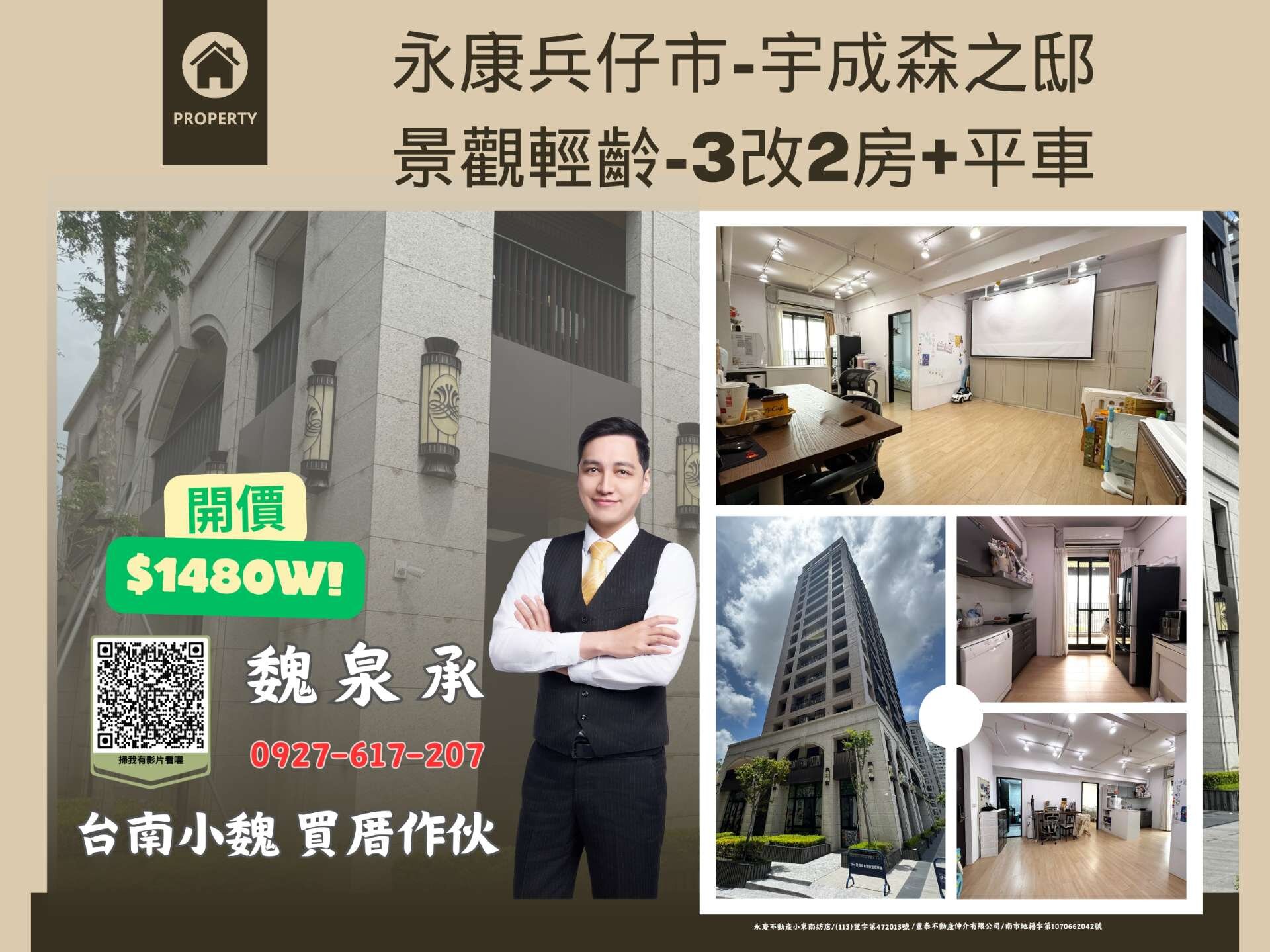 台南小魏🔥兵仔市宇成森之邸景觀輕齡3改2房+平車
