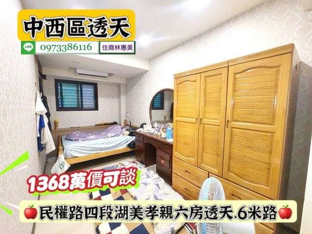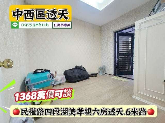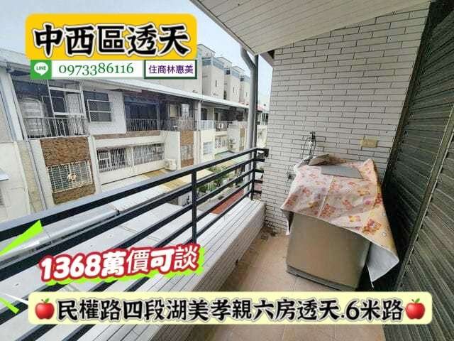 #中西區民權路四段湖美6米路孝親透天/售1368萬.價可談/林惠美0973386116