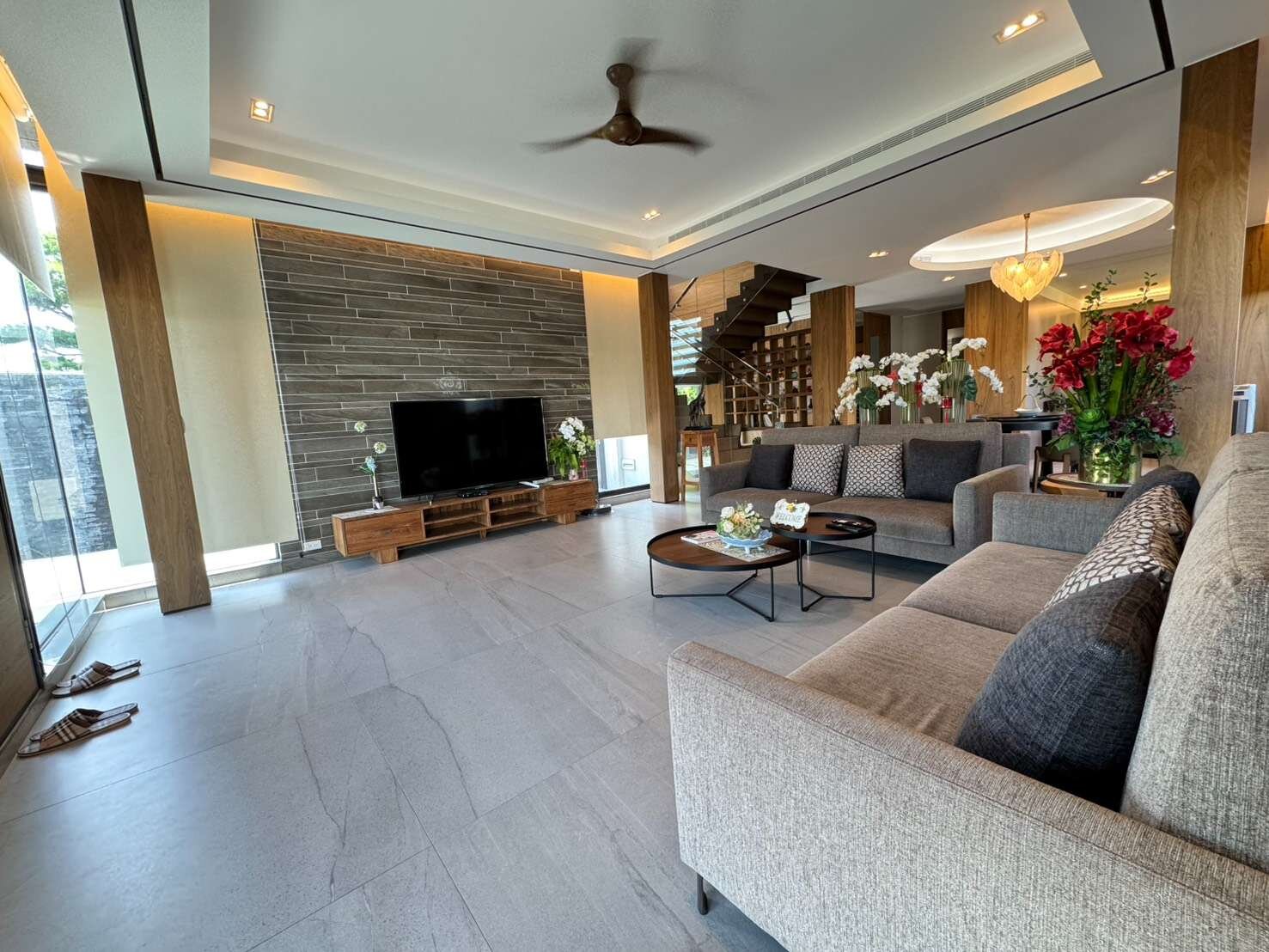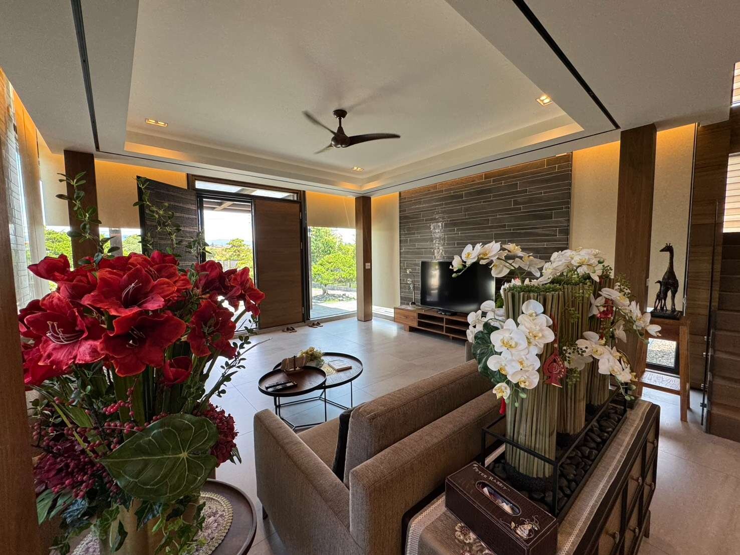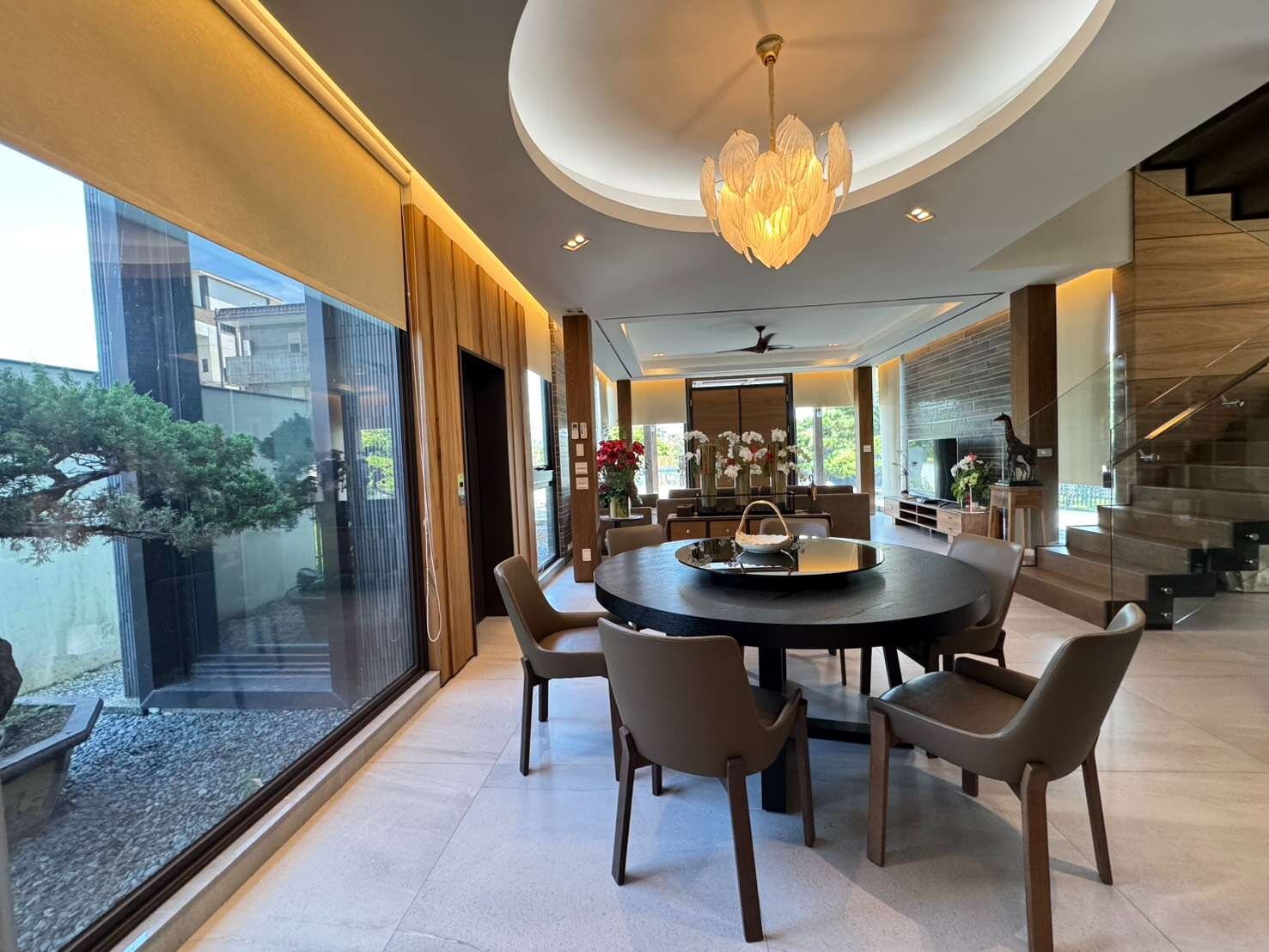 5、一樓大器客廳及景觀餐廳,雅士品茗區,視聽室,1間臥榻可做景觀孝親房,大廚房、茶水間,1套景觀衛浴