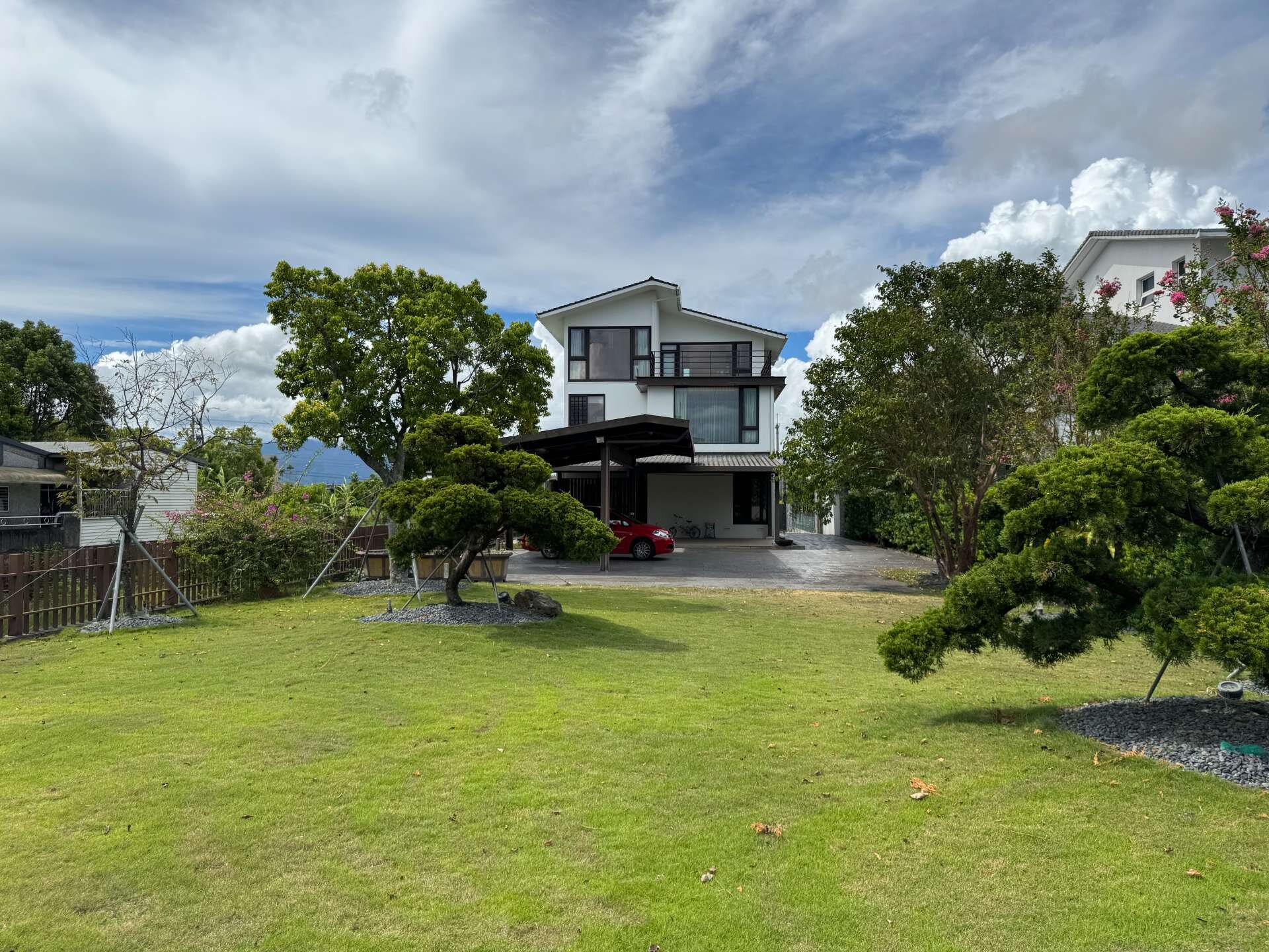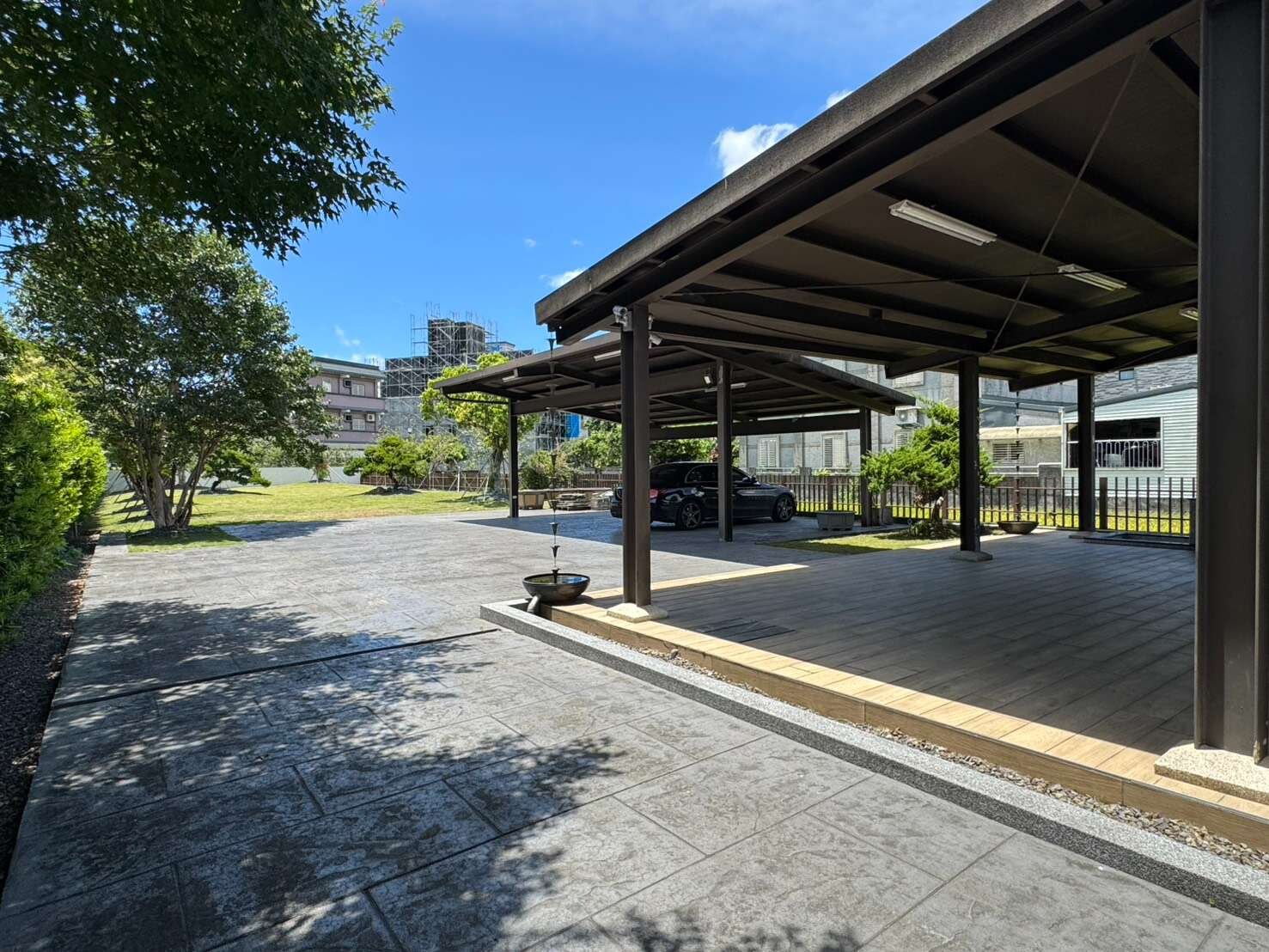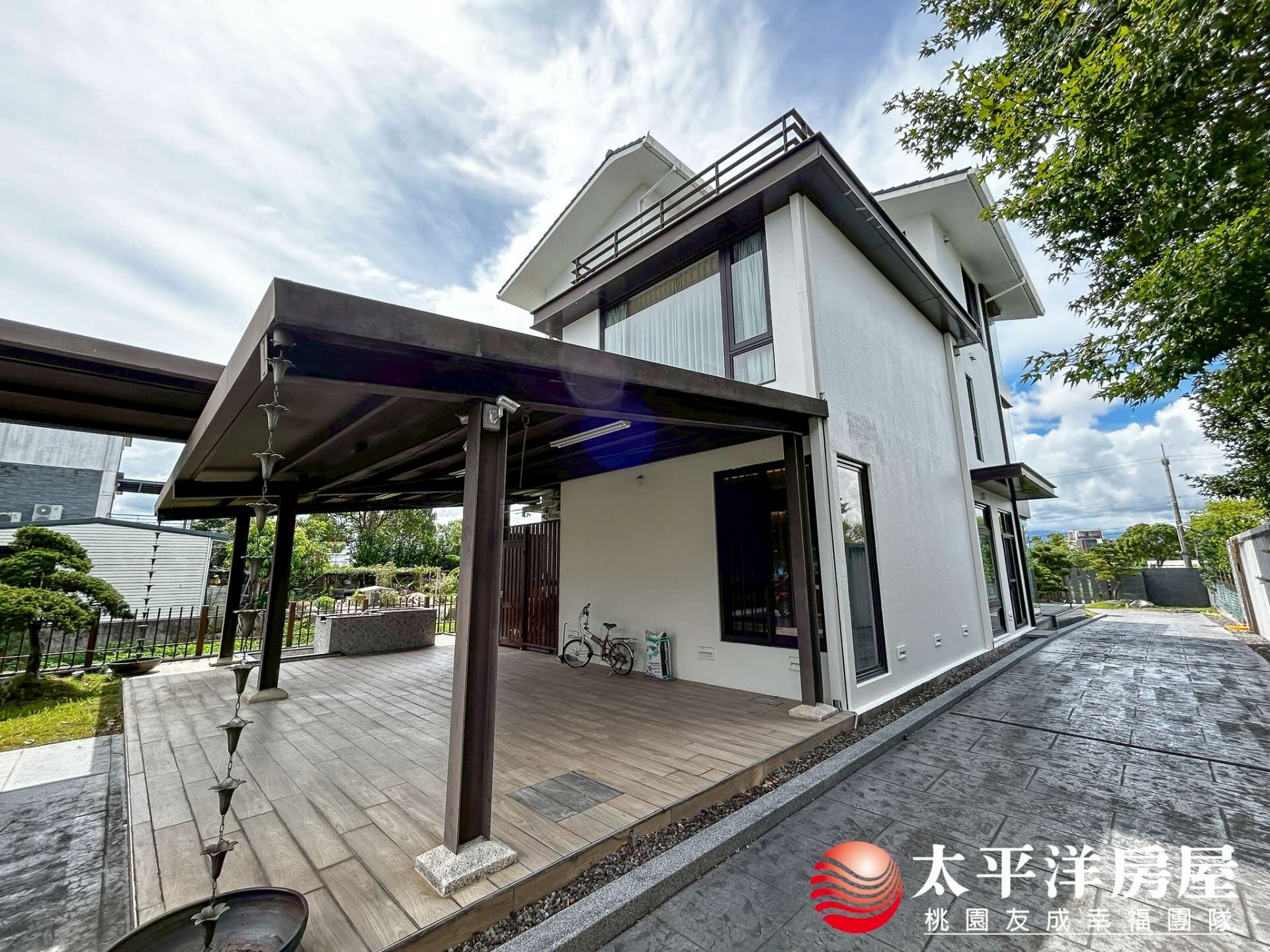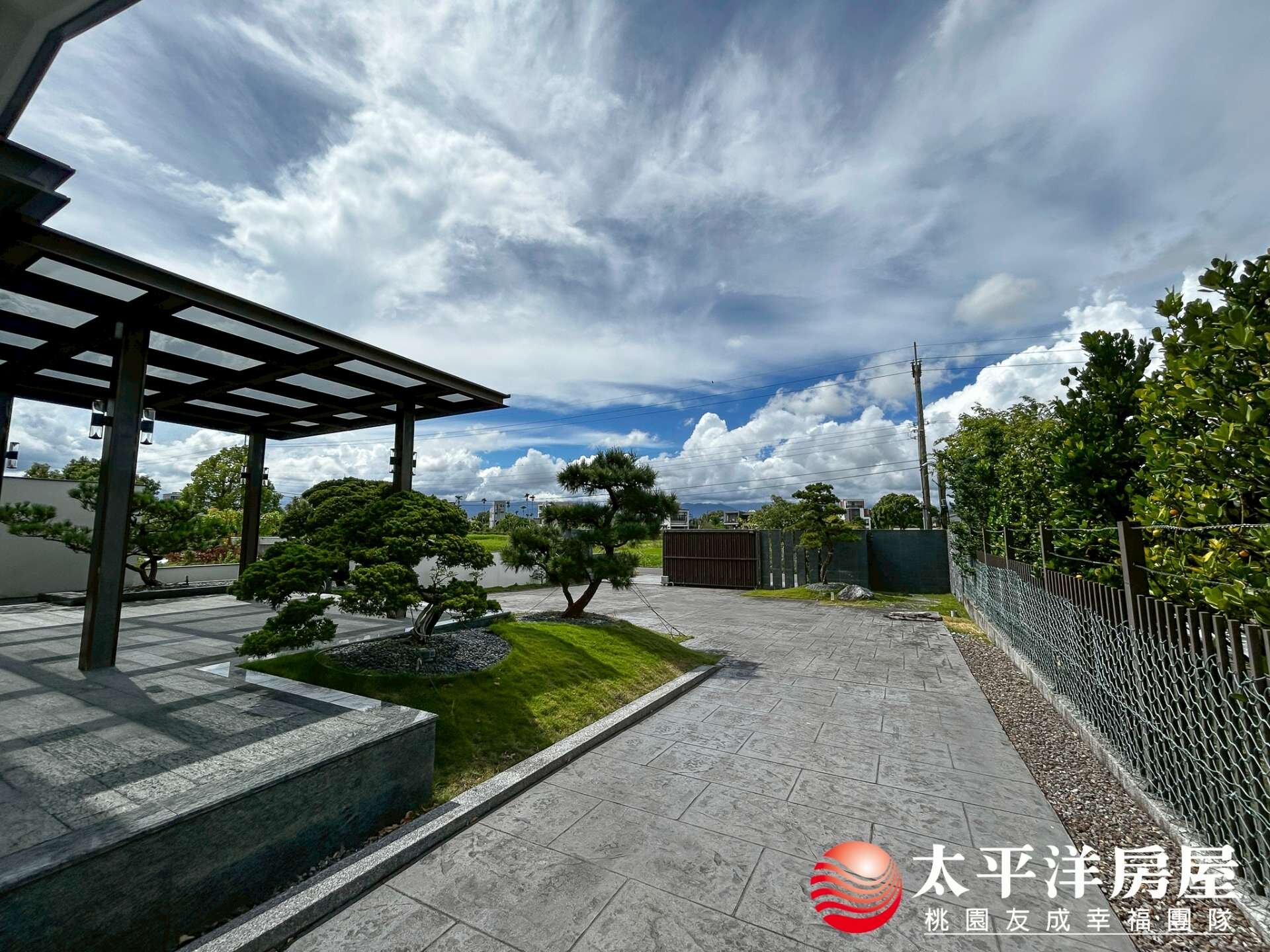 8、大前庭及大後花園,一樓後花園有休閒區,自己鑿井泉水做1個泡澡池,停車亭