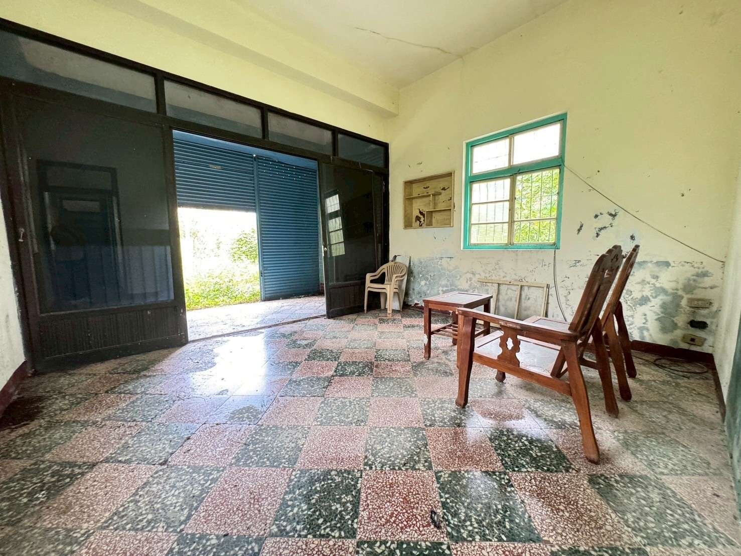 地上物有合法建物(平房),種植樟樹(約40棵)、金皇芒果 有水有電、地勢平坦,大馬路邊三角窗農地,總面積約2.5分