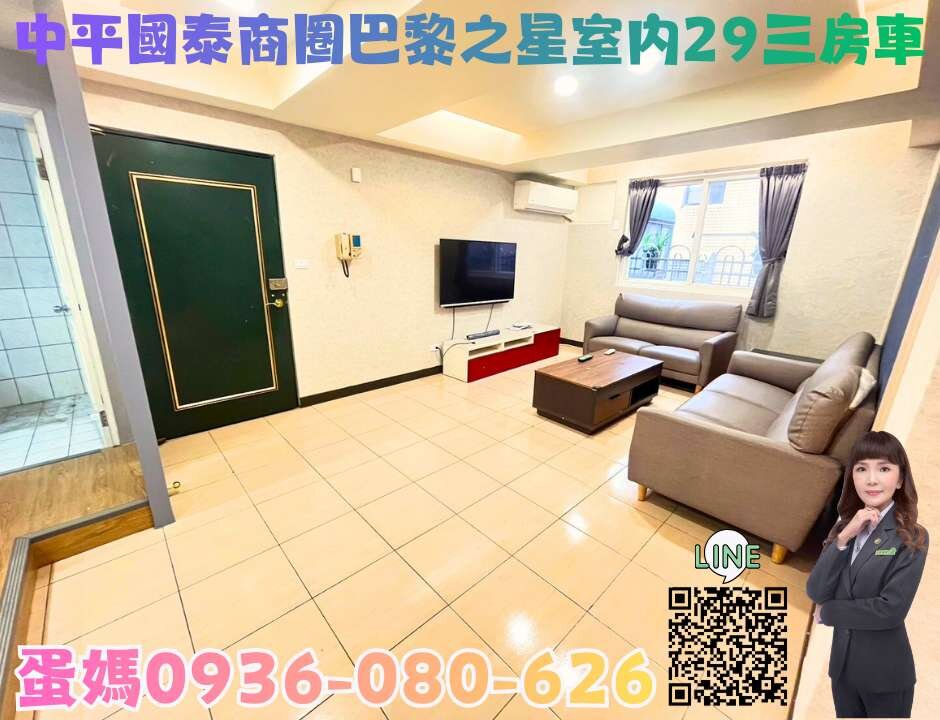 ※蛋媽推薦~專約獨賣※中平正核心~國泰商圈~巴黎之星社區~緊鄰省道~位於國聖一街上~未來紅線行經處~中山國小+中興國中明星學區~位於最精華商圈~不論買來投資收租金~還是自住都划算~低總價開案總是秒殺的~室內超過29坪~超級大三房+車位~雙衛浴都有開對外窗~開價才1298萬~搶先約看~勇敢出價~先搶先贏喔!!※