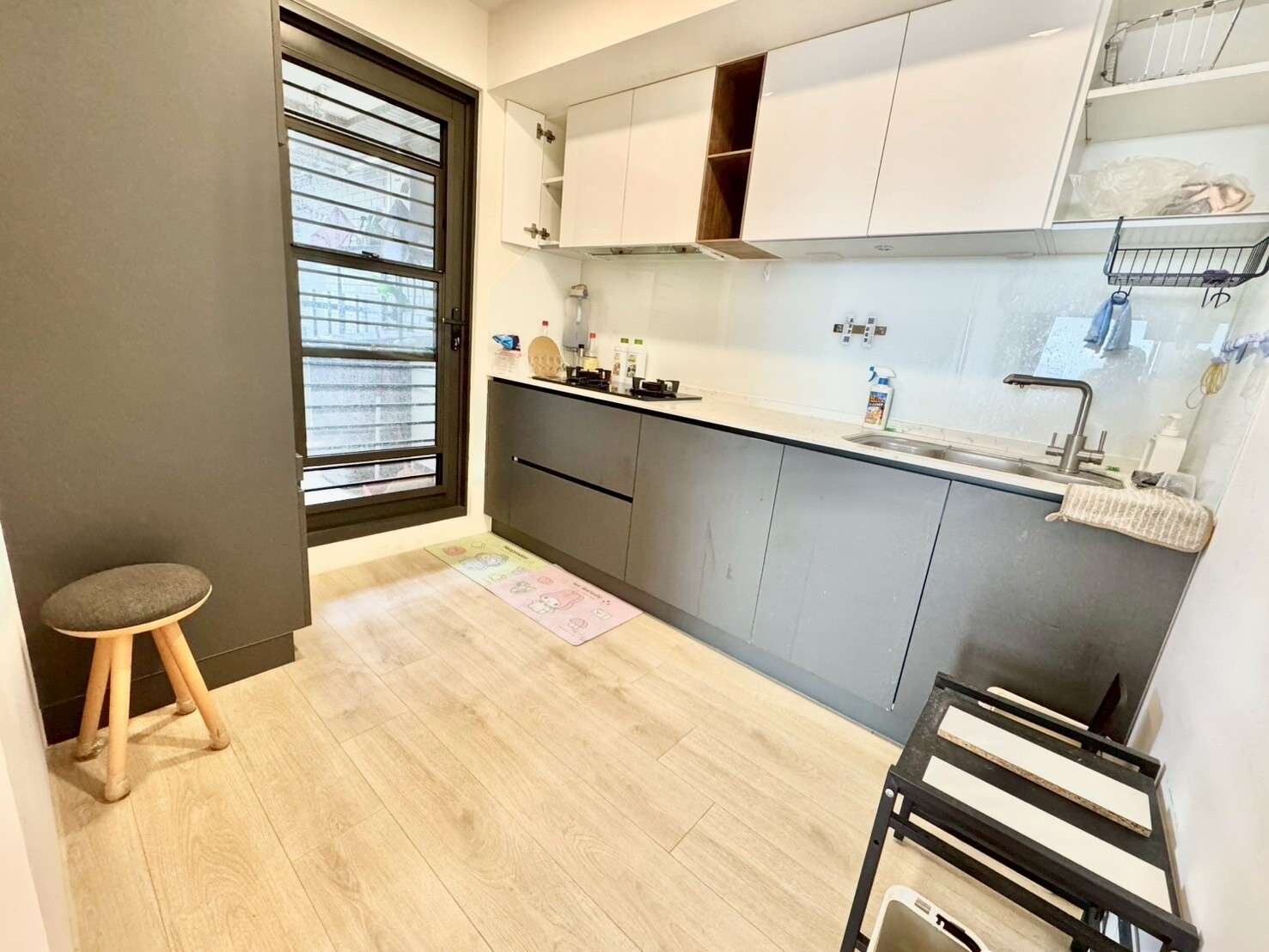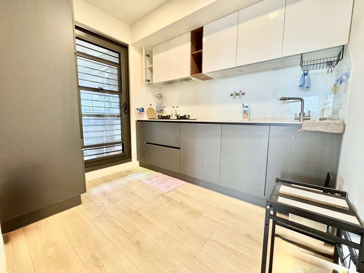11、封閉式廚房+石英石流理檯面+升降收納櫃+廚下型烘碗機,拒絕油煙好利用