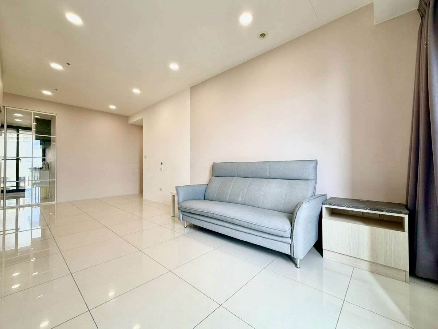 • 客廳深度約 3 米 4,空間尺度適合規劃75吋大尺寸電視