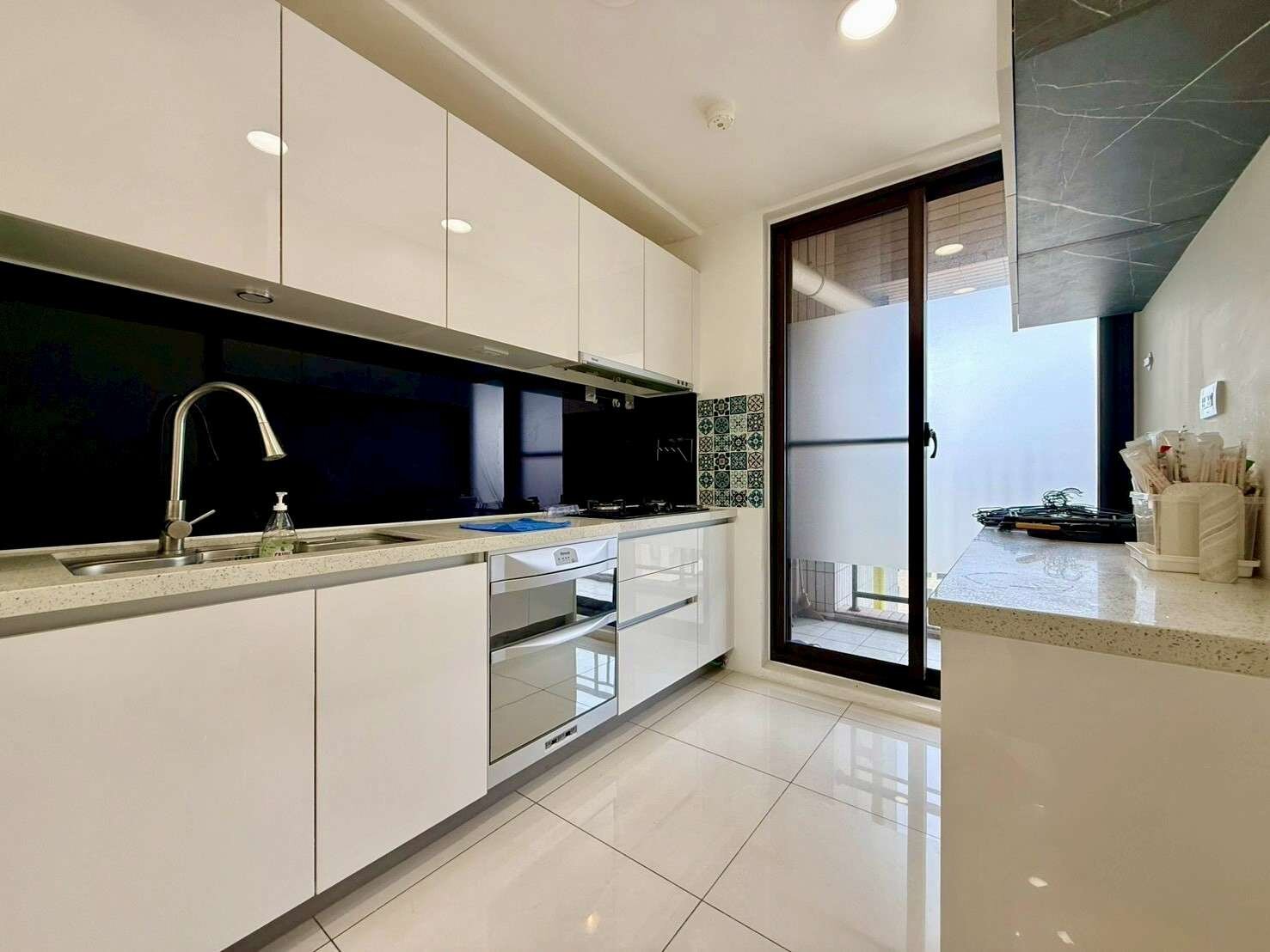 • 廚房採 獨立空間設計,並搭配 落地式玻璃拉門