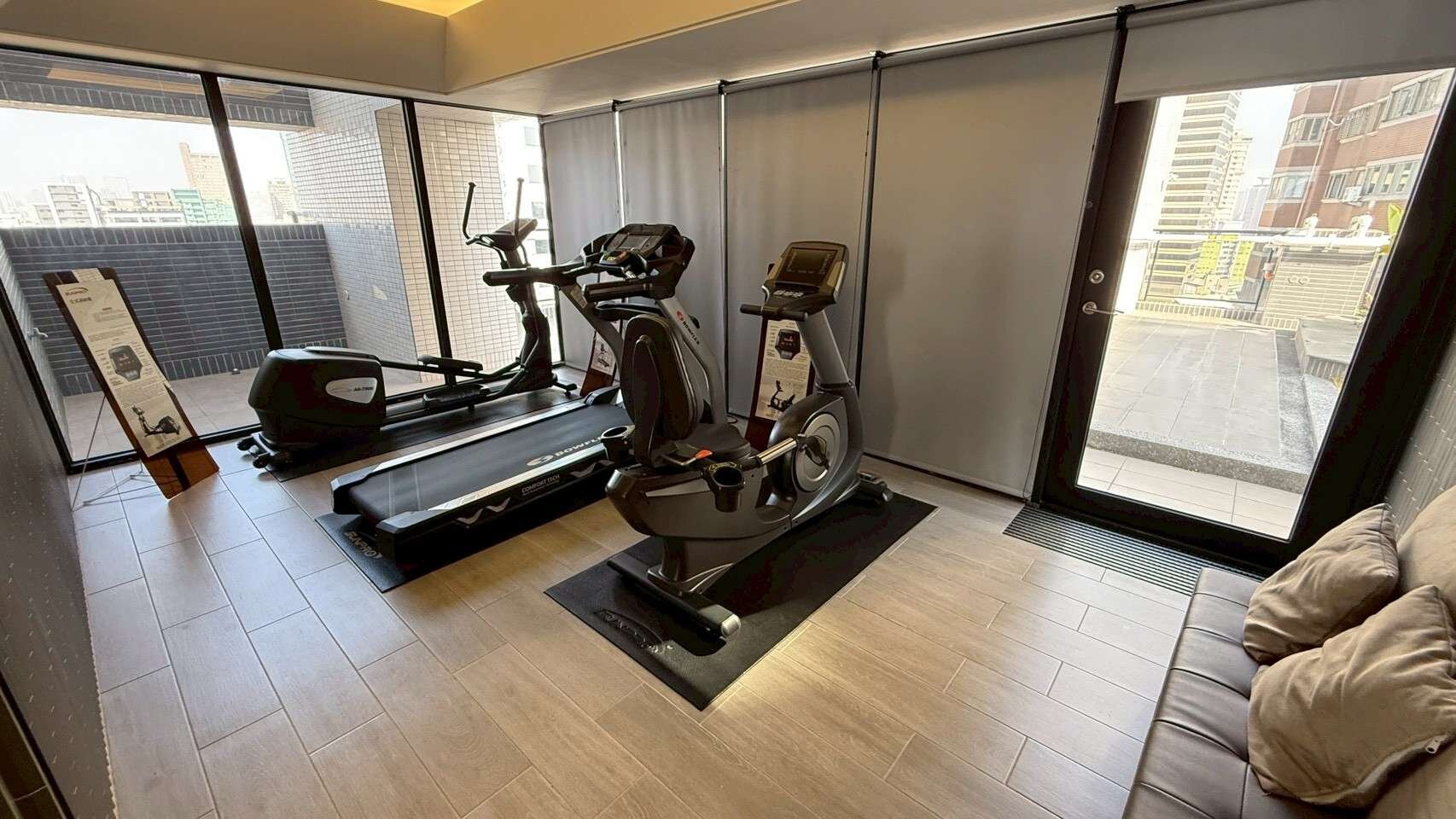 ★建商在室內採用耐磨隔音木質地板. 1樓設置環保室.頂樓曬被區及健身房