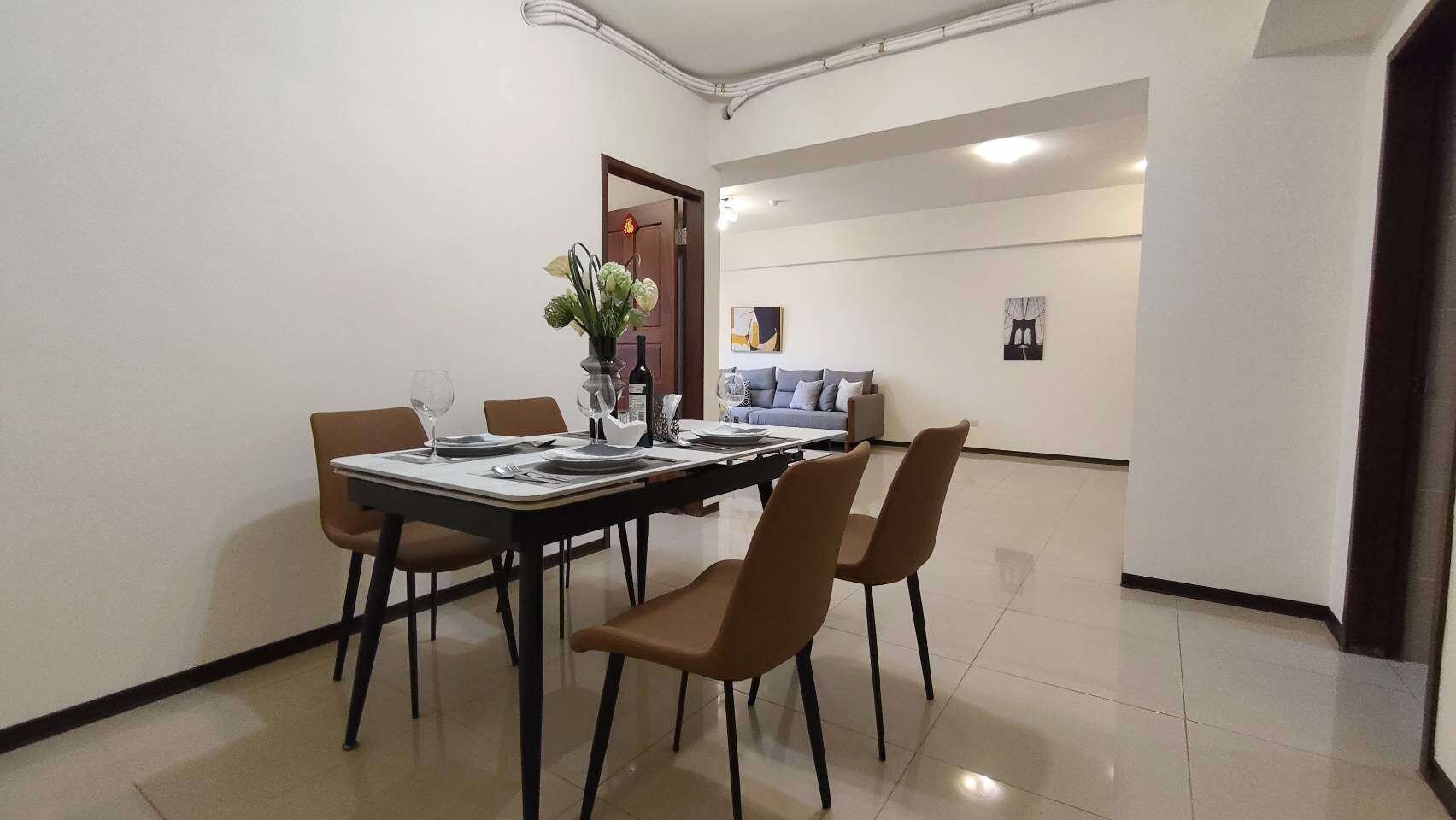 客廳與餐廳連通,開放式設計讓空間顯得更加寬敞明亮。