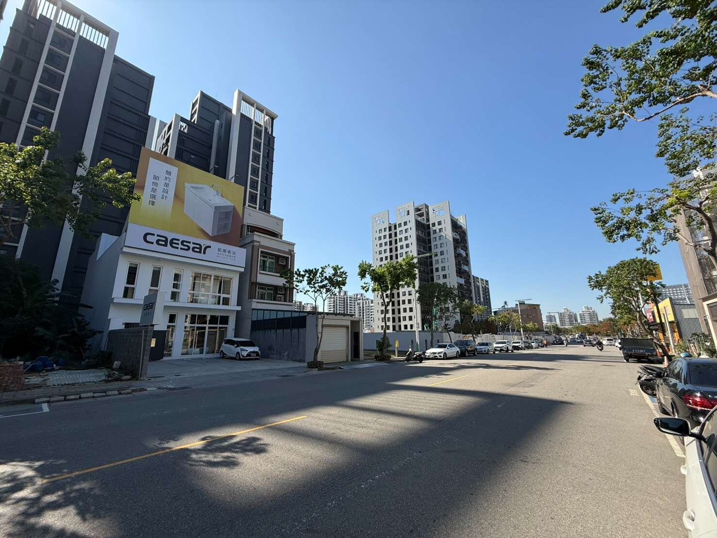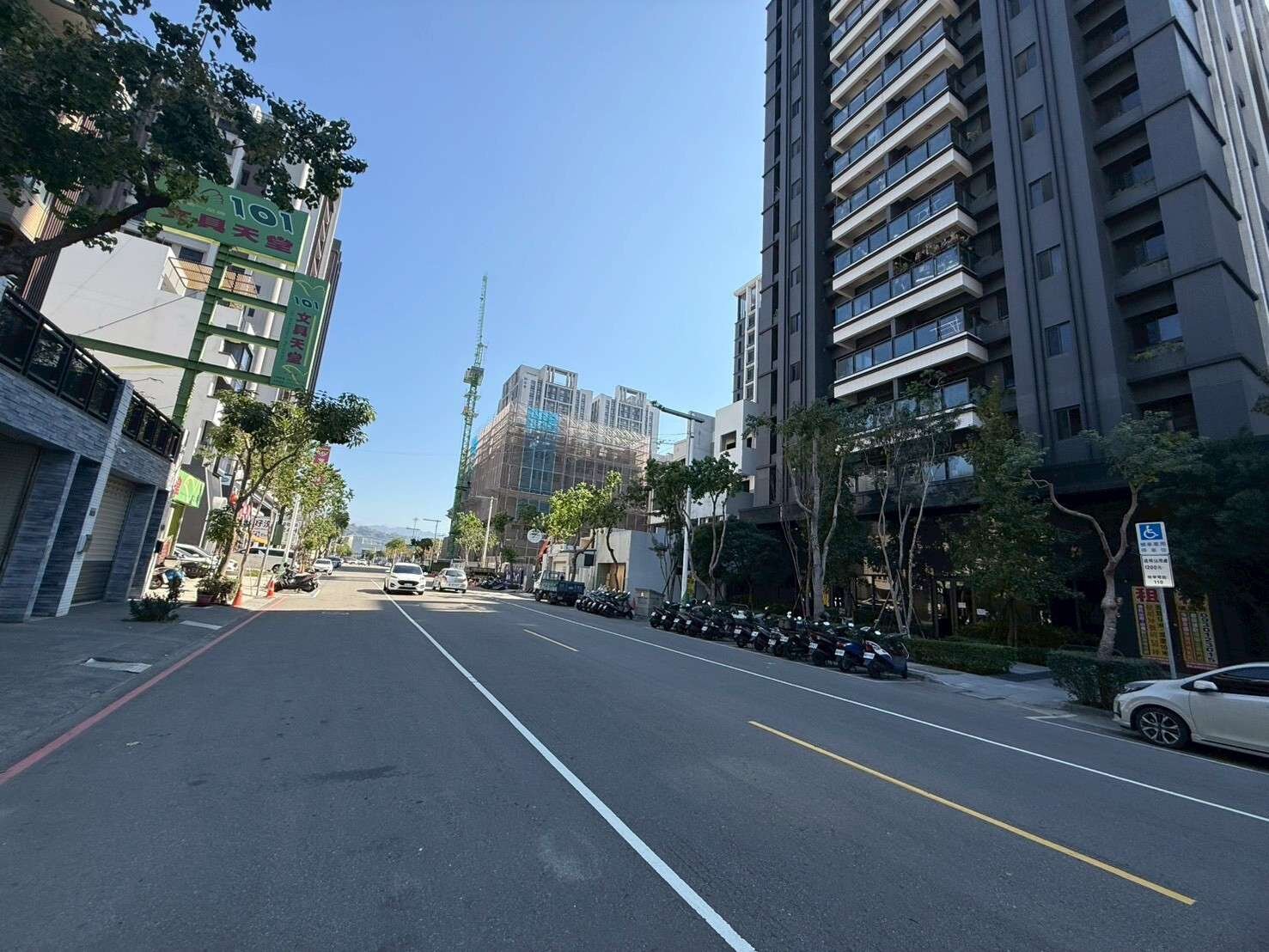 10.南興北一路是主要精華道路,附近大樓林立,門前可停8輛車,生意興隆。