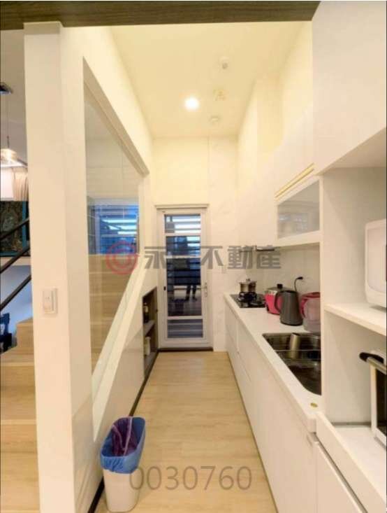 👍樓梯採 玻璃式隔間設計,提升穿透感,廚房空間更加明亮。