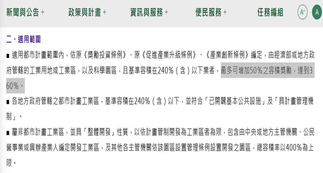 容積獎勵值依設立項目最高可提升50%