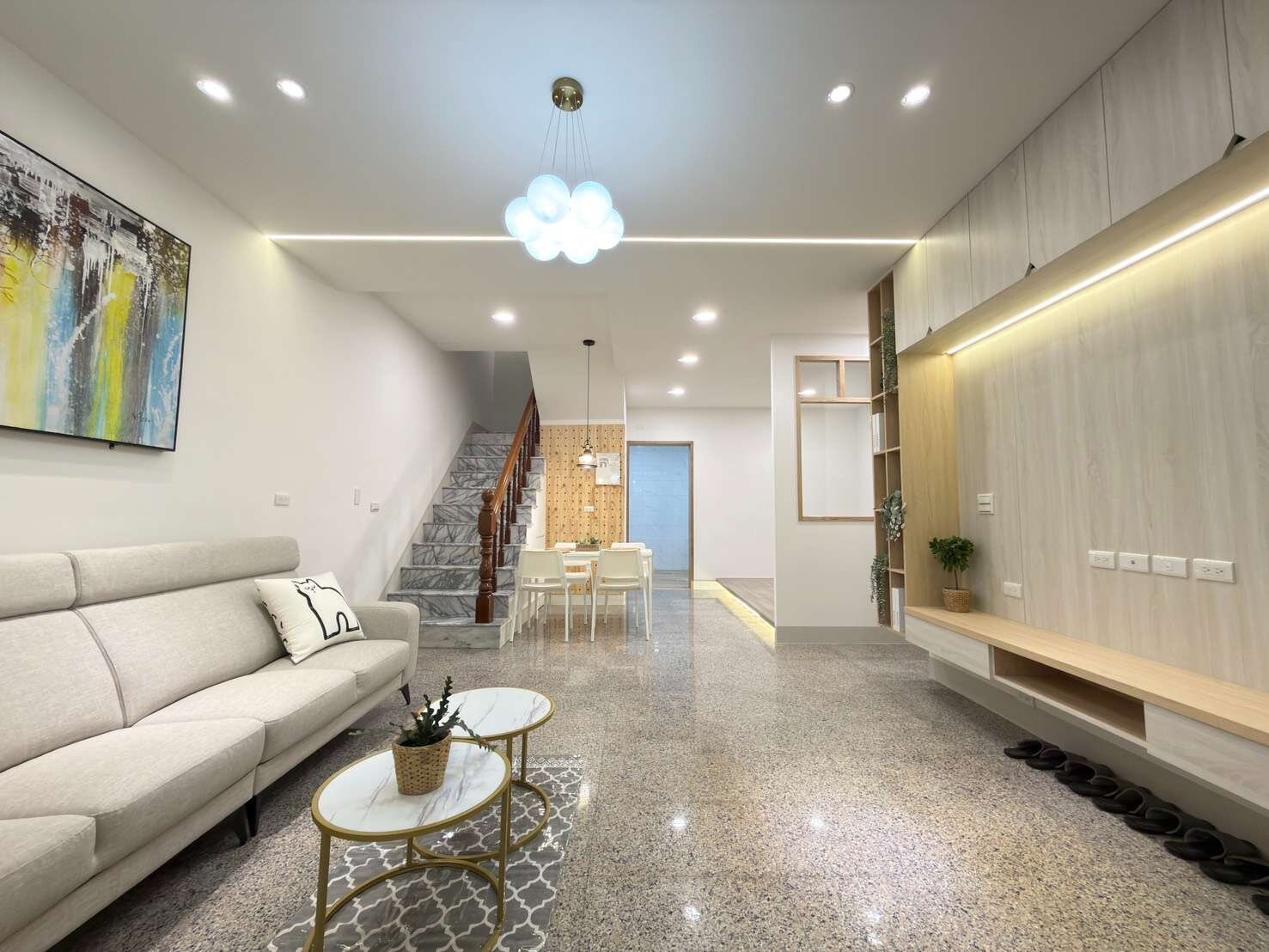 電線管路部分更新,牆壁粉刷煥然一新;衛浴設備與防水全面重做。門窗隔音佳,搭配全新燈飾與歐式風格廚房+電器櫃,整體質感大幅提升。