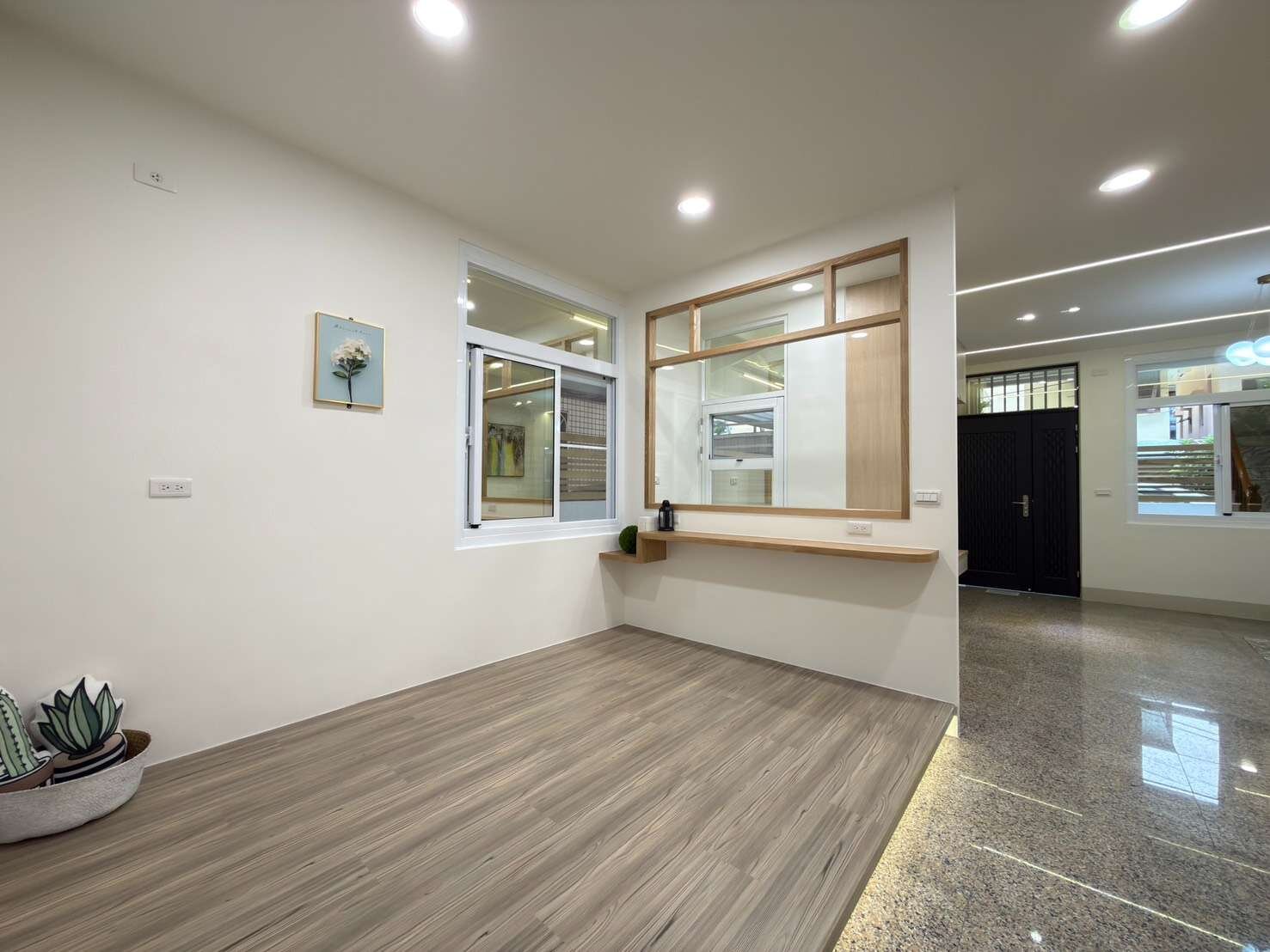 一樓客廳寬敞明亮,臥室大面窗採光舒適。另有開放和室空間,可彈性規劃成孝親房,讓長輩不必爬樓梯,三代同堂也能住得輕鬆便利。