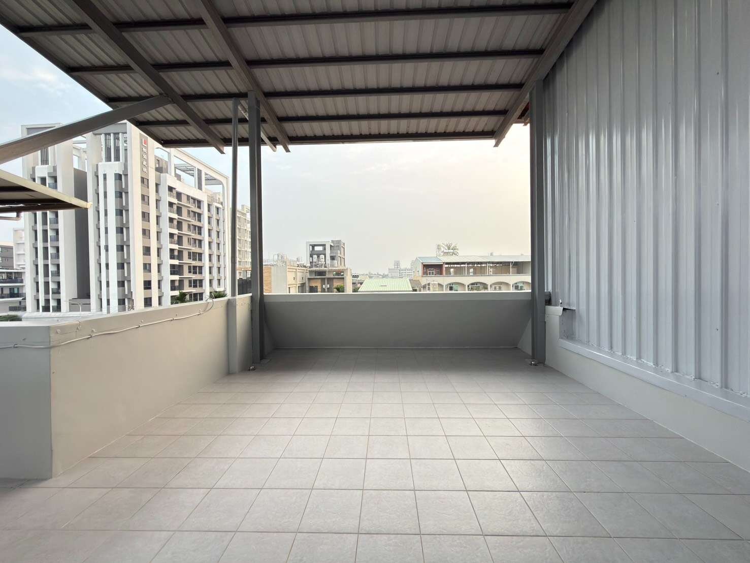 全屋共有四座陽台,洗曬、收納、植栽皆好運用。廚房設獨立隔間並臨窗,烹飪時不怕油煙。頂樓鐵皮屋加蓋,多一層防曬防水,實用性十足。