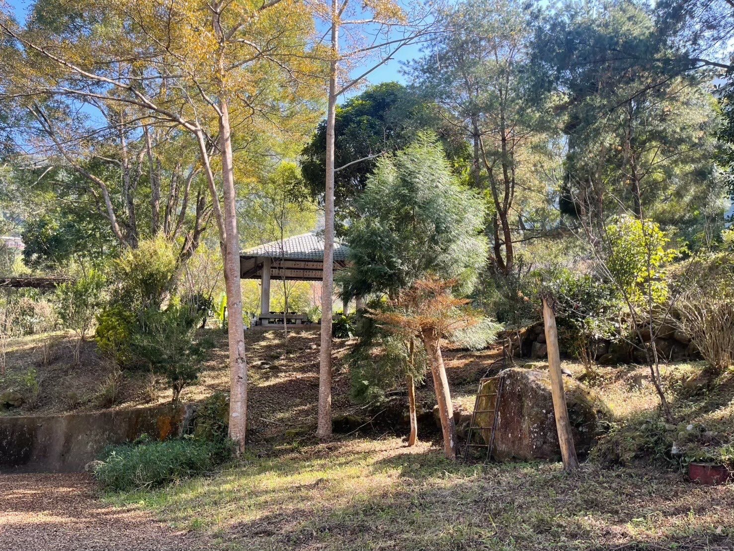 近一甲地,漂亮山莊,合法登記大農舍,水電齊全, 新社著名景觀餐廳旁,環境清幽, 園區內塔建大涼亭、紫藤架、櫻花樹及多種植物果樹, 適合休閒渡假、企業總部招待所、教育培訓中心、民宿餐廳 地主年邁,忍痛割愛,誠者出價談