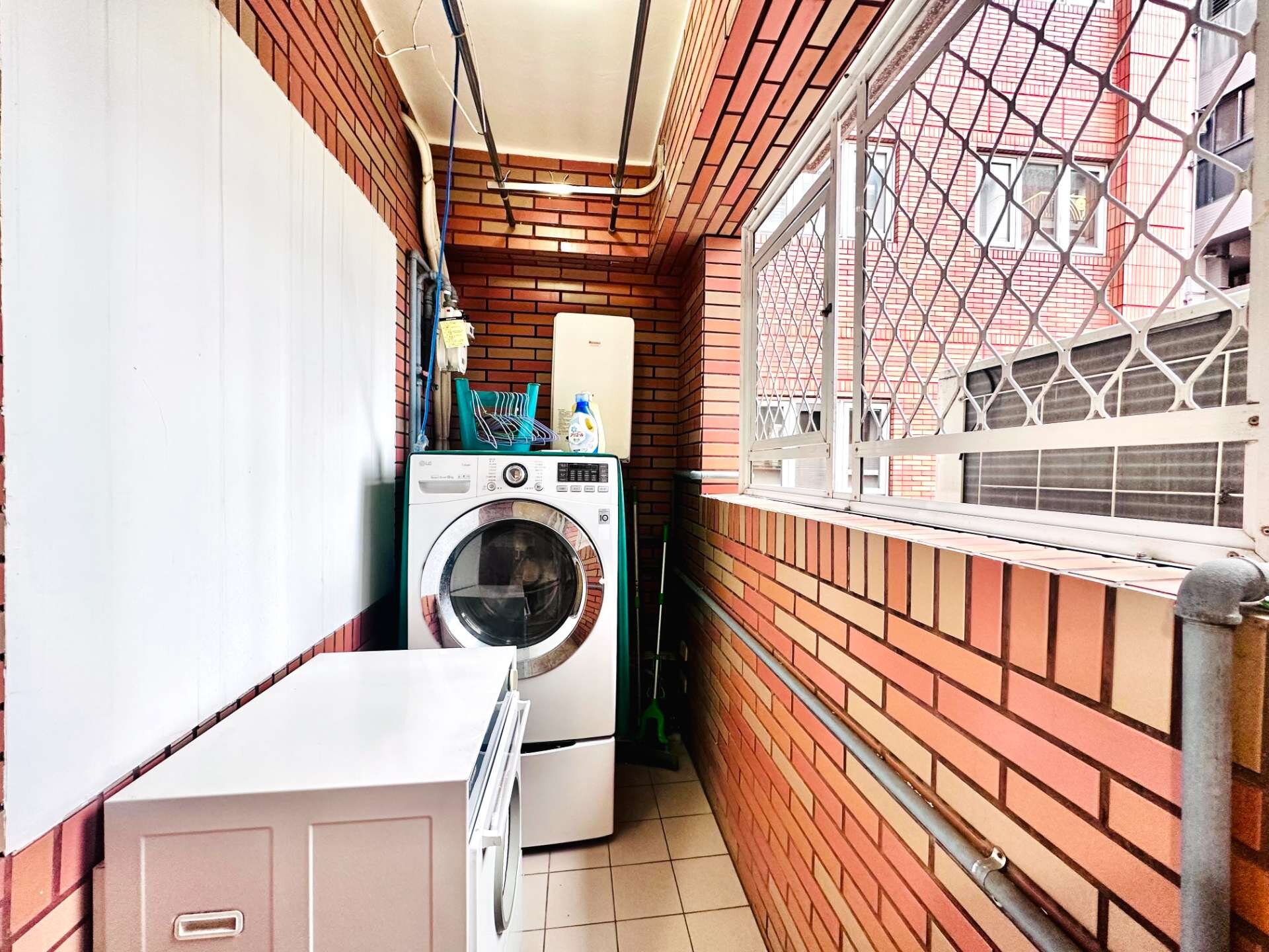 ✔ 後陽台曬衣空間明亮通風,孩子的小襪子曬在陽光下特別可愛