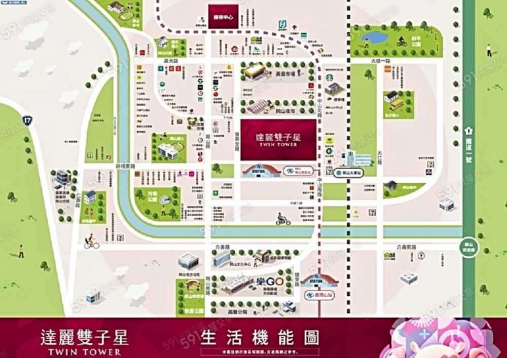 7. 本案位於岡山火車站旁,走路約3分鐘;開車約10分鐘上國道1號。8. 近岡山、路竹雙科學園區、未來增設岡山第二交流道。