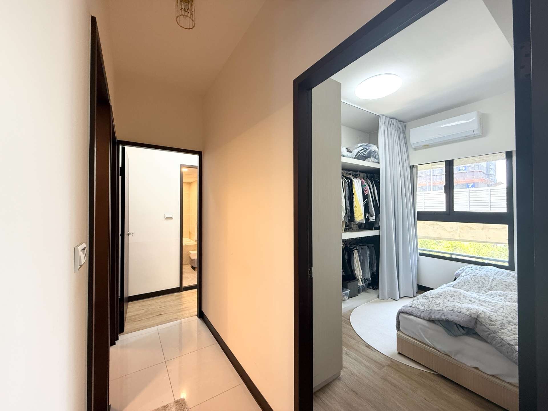 ★邊間雙面採光,入門有玄關,設置到頂鞋櫃,雙衛浴都有對外窗,三間臥室皆有放置雙人床的空間。