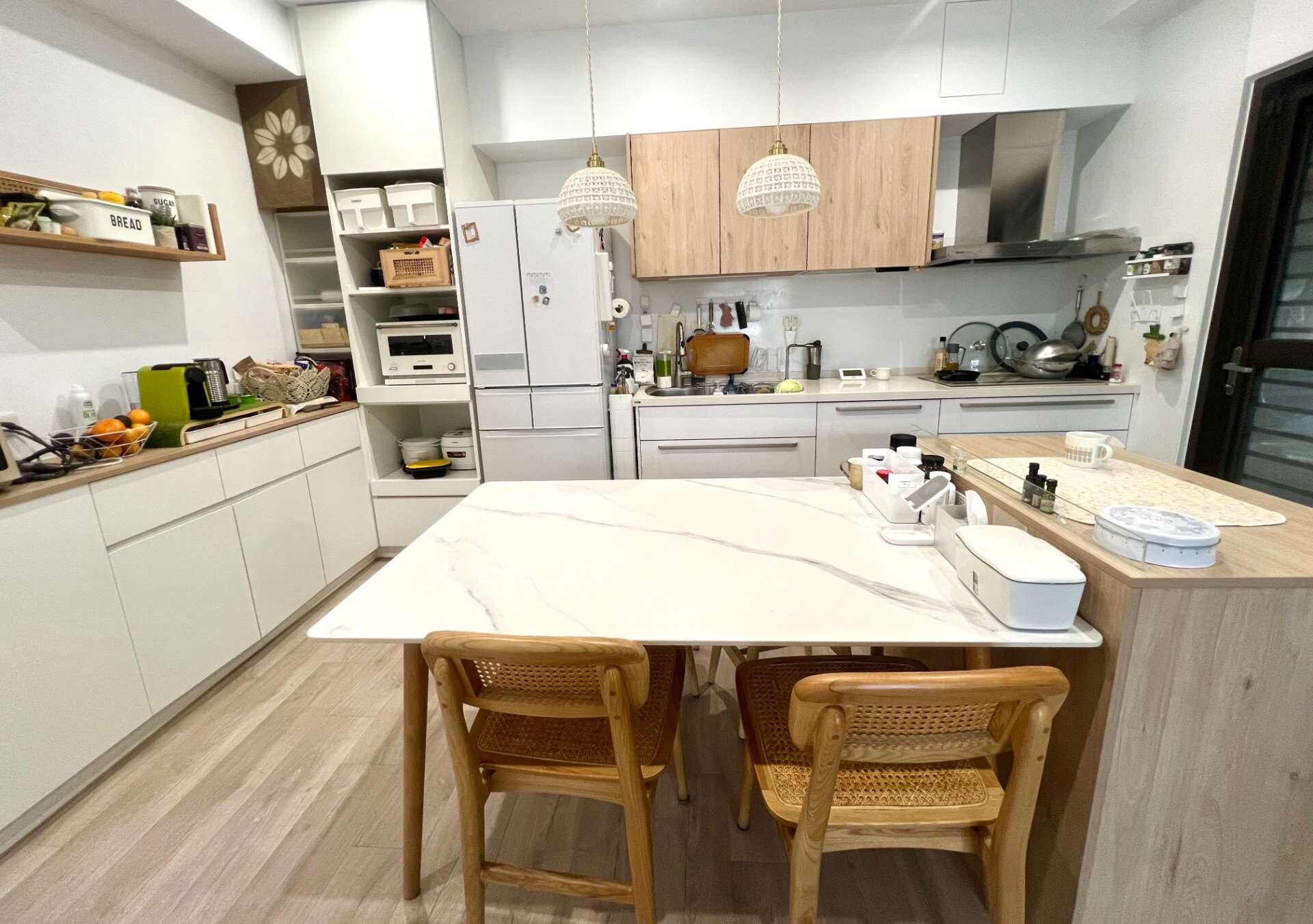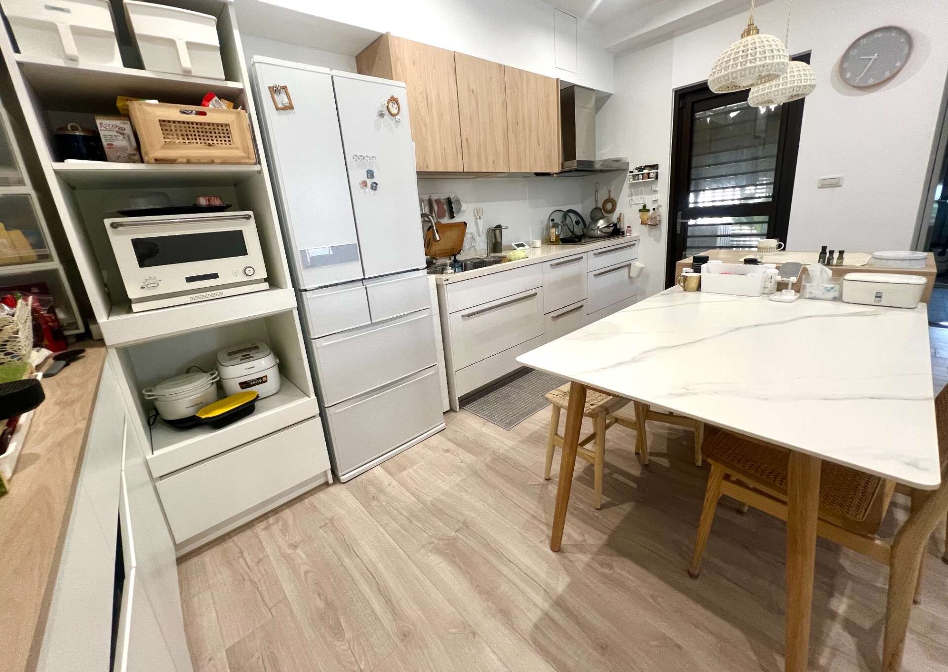 4.基地千坪,只規劃127戶,均質2-4房!社區基地退縮 建物與四周棟距大。‼️本戶屋況有變更過格局,屬特殊格局,管線重拉,瓦斯爐改成IH爐,廚房中島式設計,屋況名師前衛設計精裝潢,邊間、採光通風良好!