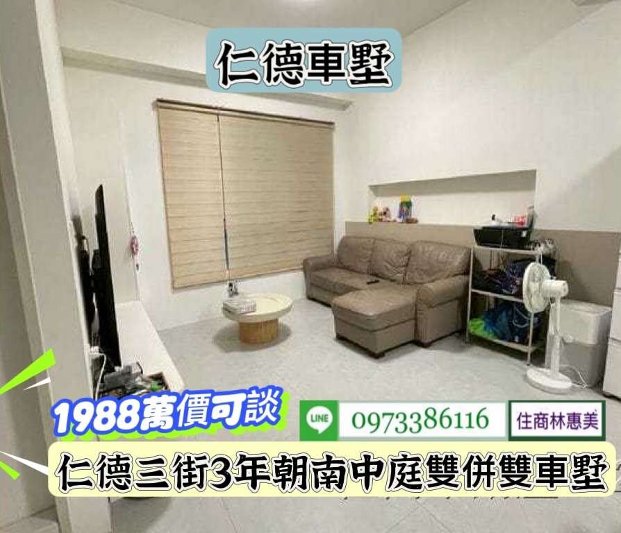 #仁德區仁德三街3年朝南中庭雙併雙車墅/售1988萬.價可談/林惠美0973386116