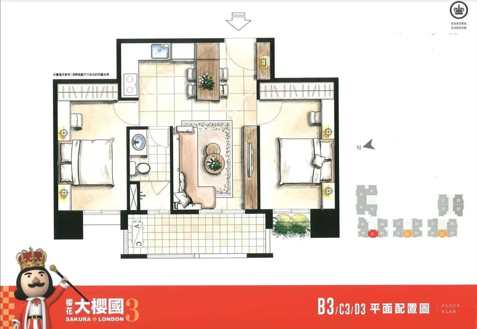 ✨「櫻花大櫻國3」座落台中市太平區環中東路四段VS中山路三段路口,基地面積1551坪、公設比32~34%,樓層規劃為5棟地上15層,地下3層建築,共有322戶住家,5戶店面,格局坪數規劃二房(27~28坪) 、 三房(33~42坪) 、 四房(55坪)。
