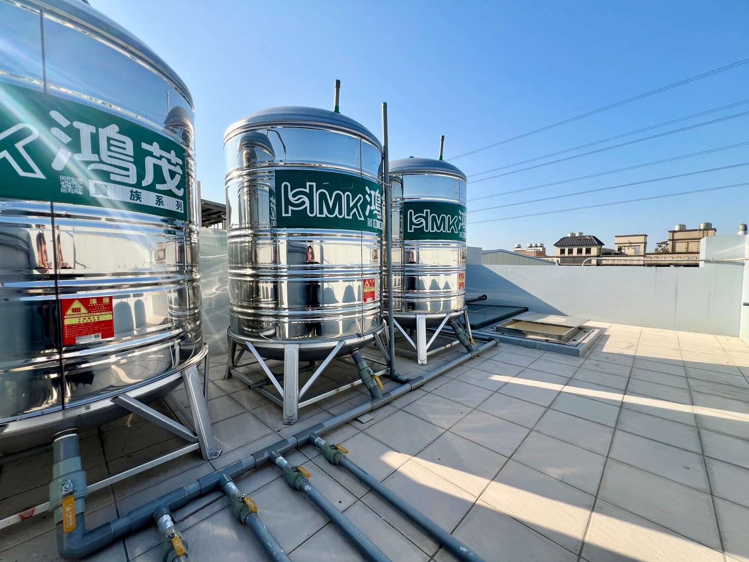 🍁頂層配置3顆2噸水塔,總蓄水量6噸(6000公升),穩定水壓免煩惱
