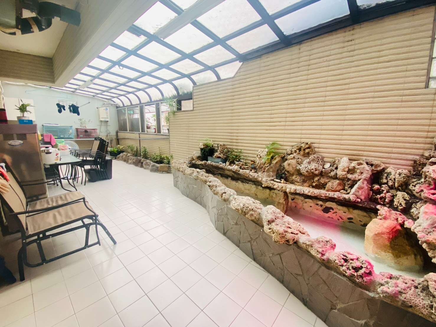🏆約9坪露臺採光罩、魚池造景、盆栽綠意專屬放鬆天堂