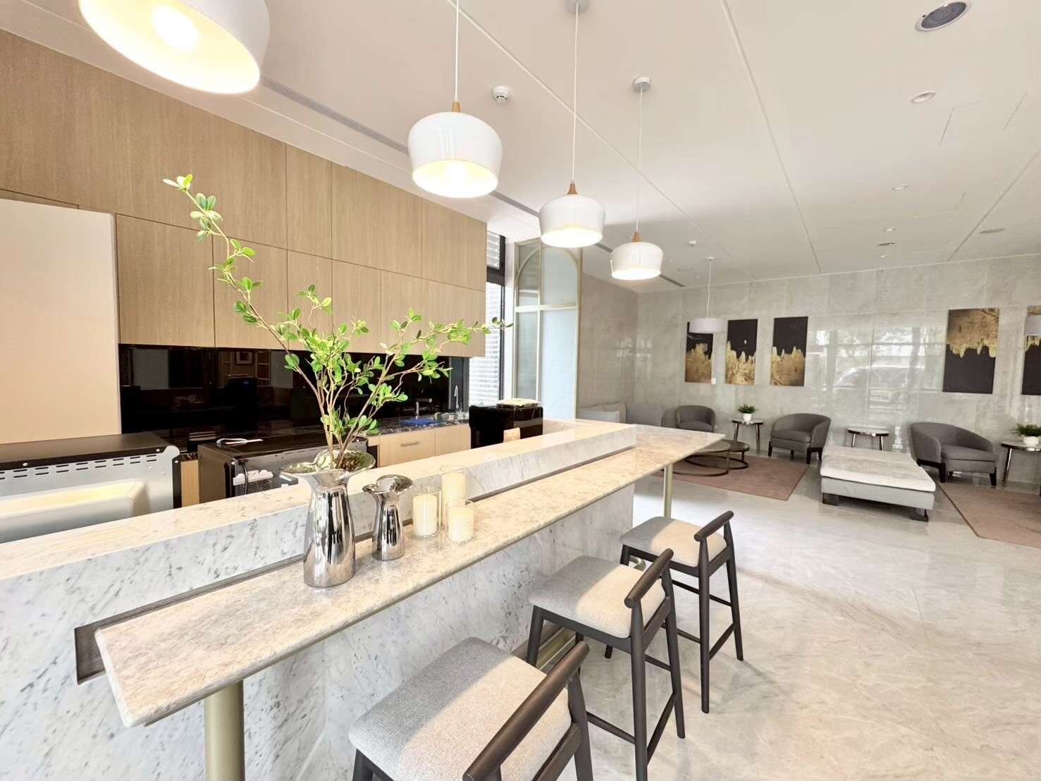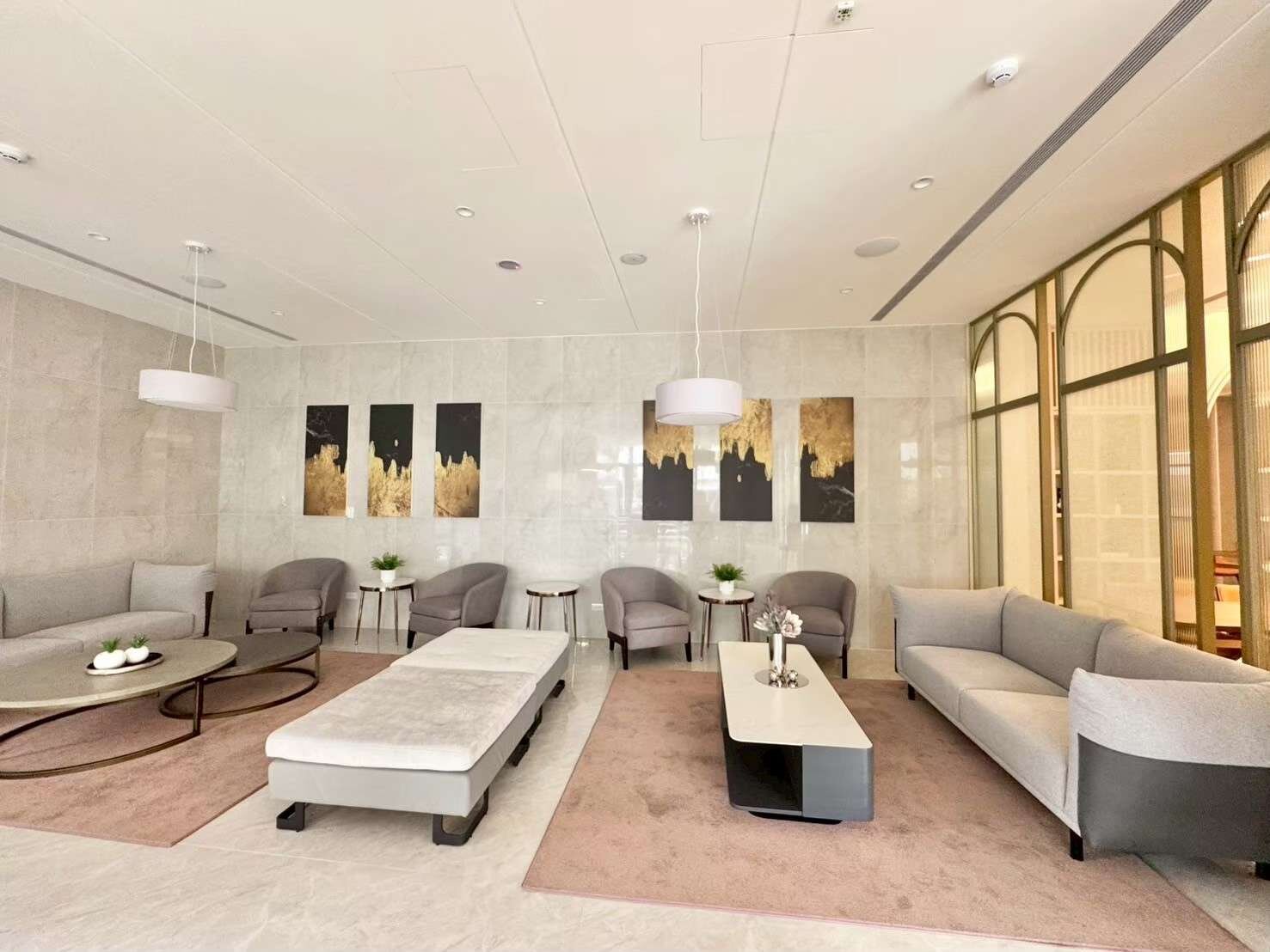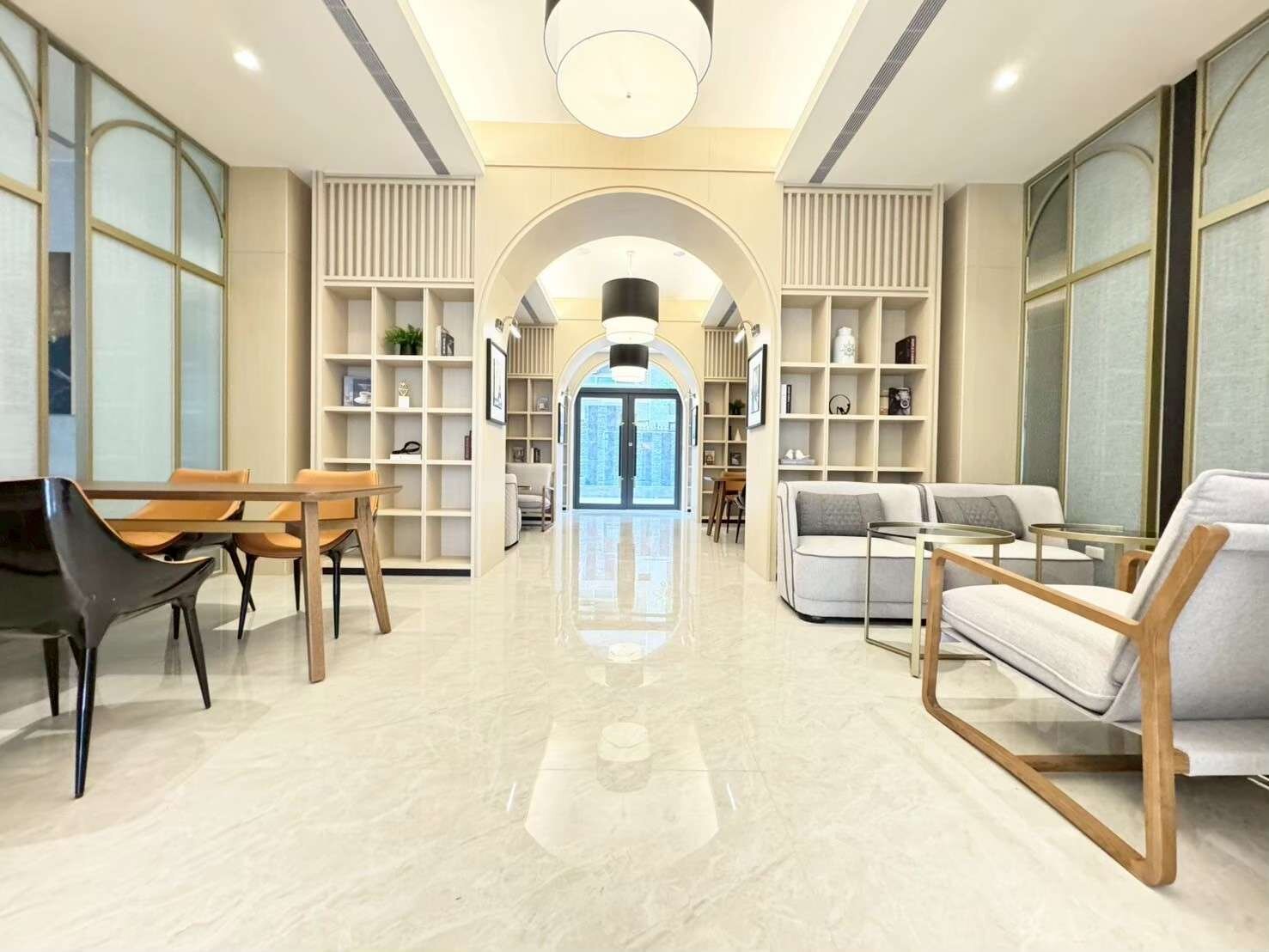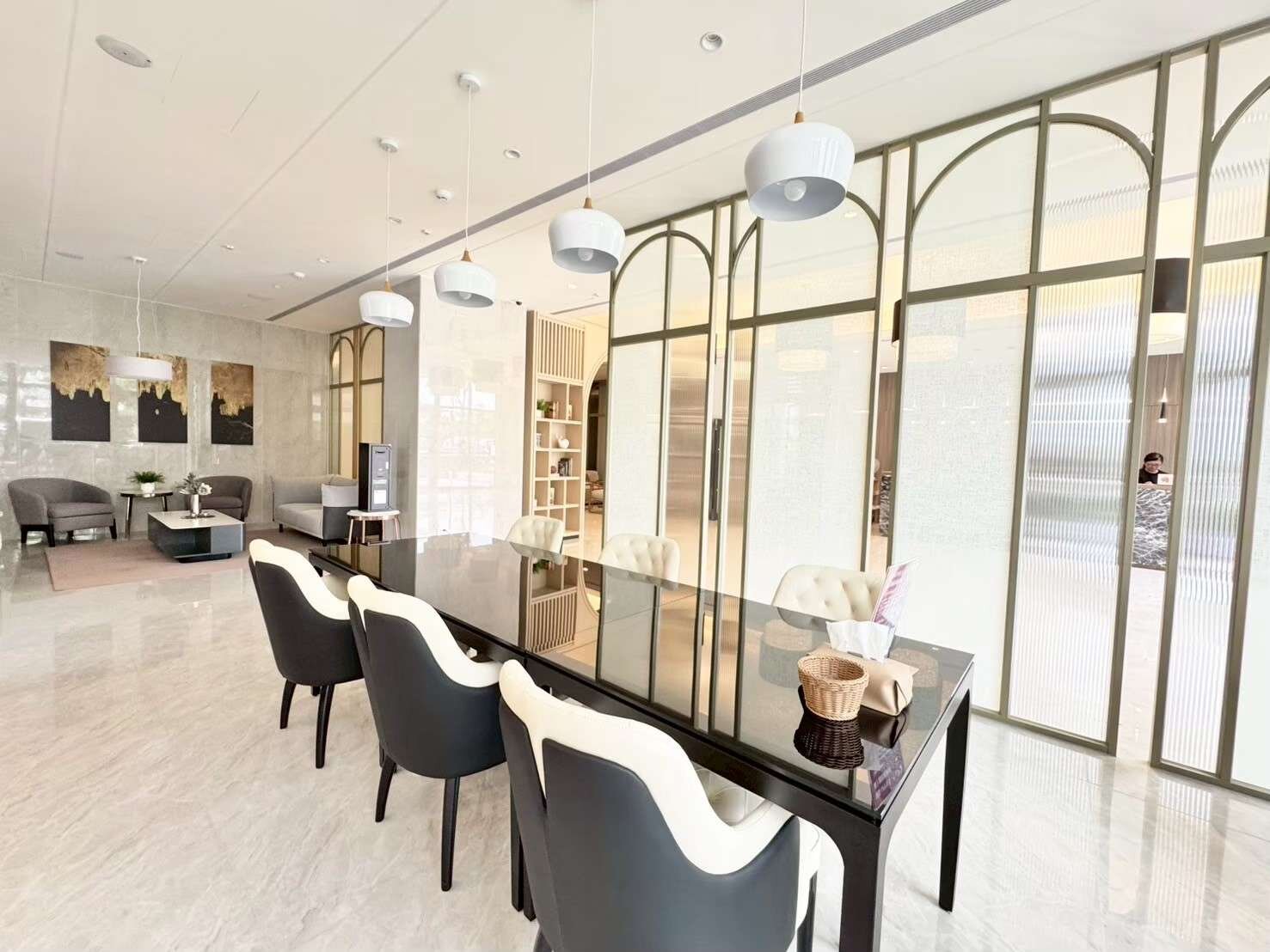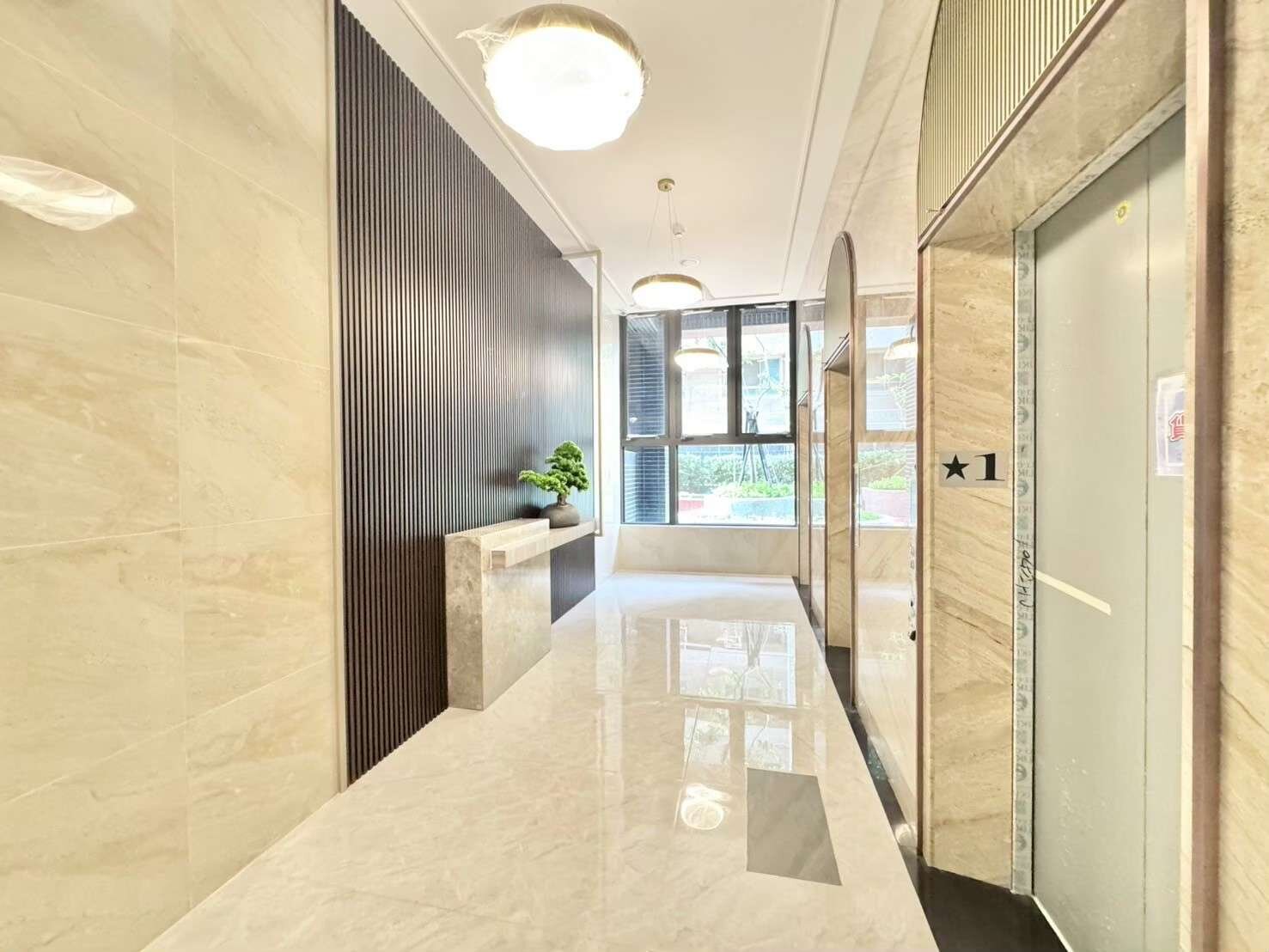 16戶一般事務所、公共設施有接待大廳、中庭花園、