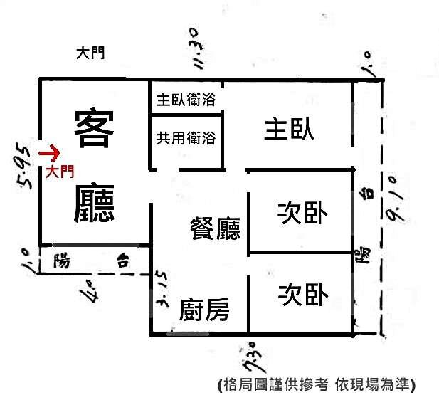 🔹方正大三房,主附建31坪。